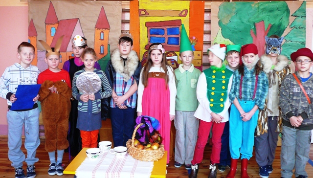 Uczniowie klasy czwartej przygotowali inscenizację bajki pt."Królewna Śnieżka". W przygotowanie pięknych strojów włączyli się rodzice. Scenografię dzieci wykonały podczas zajęć świetlicowych pod kierunkeim p.G.Rachubki. Nad całością czuwała p. K. Balewska.