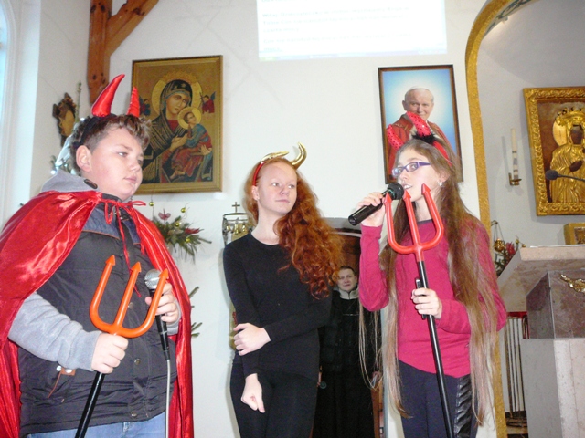 Na zakończenie okresu bożonarodzeniowego w Kościele Parafialnym pw. NMP w Mątawach uczniowie naszej szkoły pod kierunkiem proboszcza parafii, ks. R. Thiede wystawili jasełka. Pierwszy raz przedstawienie to można było obejrzeć podczas szkolnego apelu świątecznego. Teraz jednak w scenerii tej pięknej świątyni nabrały one wyjątkowego charakteru. Rozmaitość występujących postaci (Lucyfer, diabły,lekarz , anioły, policjantka itd.), dowcipne dialogi, a także ciekawe kostiumy sprawiły, że zgromadzeni w kościele widzowie z dużym zainteresowaniem oglądali występ. Pastorałki wykonane przez chórek uczniów z klasy trzeciej i kolędy śpiewane przez wszystkich zgromadzonych w świątyni dopełniły świątecznej atmosfery tego niezwykłego spotkania.