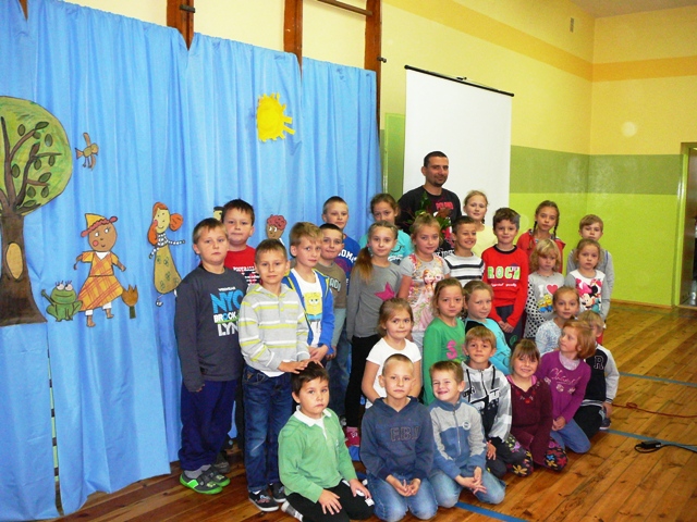 Pytań do pana Michała było wiele- na wszystkie chętnie odpowiadał. Po spotkaniu ustawiła się do naszego gościa długa kolejka uczniów chcących zdobyć jego autograf.
