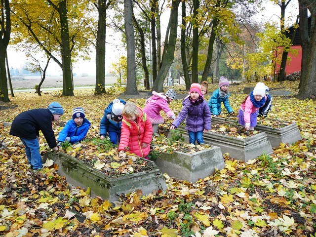 Klasy starsze pracowały na cmentarzu w głębi wioski, natomiast uczniowie klas I- III działali na cmentarzu przy szkole.