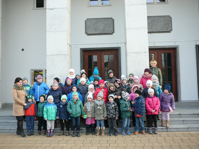 Po zakończonym spektaklu uczniowie naszej szkoły udali się na zwiedzanie teatralnego zaplecza. Zostali zaproszeni na scenę, na której odbyła się sesja fotograficzna z postaciami z bajki. Mogli także obejrzeć rozkładany domek babci, przyjrzeć się opuszczaniu i podnoszeniu kurtyny. Zobaczyli także jak wygląda widownia od strony sceny, zostali oświetleni teatralnymi reflektorami i usłyszeli efekty dźwiękowe, których podczas spektaklu nie było np. odgłosy burzy. Potem zwiedzający przeszli do teatralnej „kieszeni”, czyli miejsca, w którym przechowywane są elementy scenografii i rekwizyty z różnych przedstawień. Dużo radości wywołał pobyt w aktorskiej garderobie. Każdy przez chwilę poczuł się aktorem, przeglądając się w licznych w tym miejscu lustrach. Na piętrze dzieci obejrzały hol i foyer, w którym widzowie mogą spędzić antrakt, czyli przerwę podczas dłuższych przedstawień.