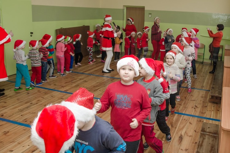 Uczniowie bawili się w dwóch grupach: najpierw klasy młodsze O-III, później starsze IV-VI. W sali gimnastycznej p.Patrycja wprowadziła je w świat zabaw. Było: Limbo, Krasnoludek, muzyczne krzesła, zagadki świąteczne, obrzucanie bałwana śnieżnymi kulami i wiele innych. Radość dzieci nie miała granic, uśmiech nie schodził z ich buziek. Wszyscy uczniowie otzrymali słodki upominek a także książki oraz gry, które wręczyła p.Dyrektor. Piękne albumy przyrodnicze, kolorowe książki oraz ciekawe gry dla dzieci to podarunek od Przyjaciela Szkoły, który ( jak na prawdziwego św. Mikołaja przystało), chce pozostać anonimowy. Bardzo dziękujemy!