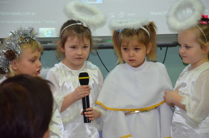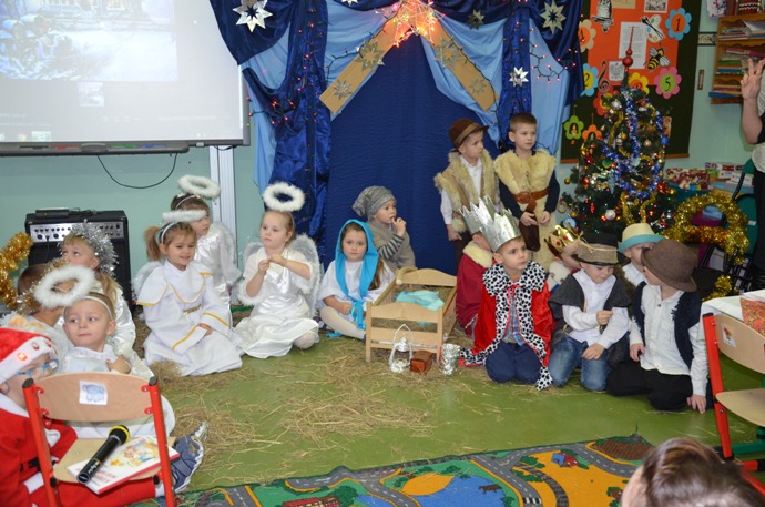 W piątek 18 grudnia przedszkolaki wystawiły przedstawenie jasełkowe. Przygotowania do tego ważnego wydarzenia trwały od połowy listopada. W pocie czoła maluchy uczyły się swoich jasełkowych ról oraz piosenek świątecznych i kolęd.Rodzice pomogli nam przygotowując stroje do występu. Na przedstawienie zaprosiliśmy p.dyrektor oraz wszystkich rodziców. Goście dopisali, maluchy dały z siebie wszystko. Niespodzianką był video- list od świętego Mikołaja oraz filmik o przedszkolakach, który przygotowała p.Natalia- bardzo dziękujemy. Za fotorelację dziękujemy panu fotografowi - dziadkowi Przemka.