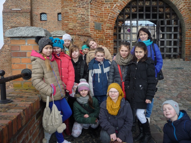 W środę 16 marca z klasą IV wybraliśmy się na wycieczkę do Grudziądza. Głównym celem naszej wyprawy był Teatr i obejrzenie spektaklu pod tytułem: ,,O smoku wawelskim”. Bardzo podobała nam się gra aktorska, kostiumy, muzyka, śpiew i oczywiście efekty specjalne. Zachwyciła nas scenografia przedstawiająca smoczą jamę i sam smok wyglądający jak żywy. Czasu mieliśmy bardzo dużo, więc odwiedziliśmy jeszcze Muzeum im. ks. Władysława Łęgi. Pracownik Muzeum oprowadził nas po salach z ciekawymi wystawami. Zwiedziliśmy ekspozycję militariów(szable, miecze, odznaczenia, legitymacje wojskowe, dokumenty, żołnierskie czapki i obrazy o tematyce wojskowej). Obejrzeliśmy też wystawę malarstwa współczesnego, które jest dla nas trochę zaskakujące, ale tytuły obrazów były ciekawe. Ponadto w kolejnych salach przyglądaliśmy się eksponatom archeologicznym(naczynia gliniane, biżuteria, ubiory, narzędzia),oraz rozpoznaliśmy rekonstrukcję grodu. Podziwialiśmy też wystawę czasową ,,Kartka Wielkanocna”. To miejsce nas zachwyciło rysunkami, malunkami, kolorami i może wspomnieniami. Dostrzegliśmy kartkę z 1911 roku, a więc oprócz pięknych kształtów i barw, zbliżających się Świąt, jeszcze historia. Na zakończenie wycieczki zeszliśmy nad Wisłę podziwiać średniowieczne spichrze.