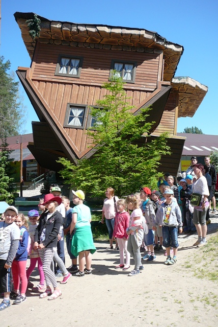 Największą atrakcją okazało się wejście i wędrówka po domu, który został zbudowany do góry nogami.Ta budowla ma być alegorią współczesnego świata, w którym tradycja i system wartości zostały postawione na głowie, jednak dla dzieci to zagadnienie jest nieco za trudne.