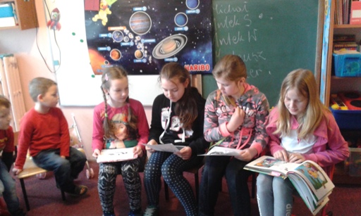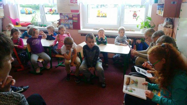 Przedszkolaki z wychowawczynią serdecznie dziękują starszym kolegom i koleżankom z klas I- VI pod kierownictwem pani Grażynki za cotygodniowe czytanie bajek. Mamy nadzieję, że w przyszłym roku o nas nie zapomnicie i będziecie nas odwiedzali równie często. DZIĘKUJEMY