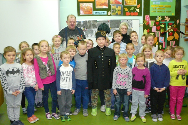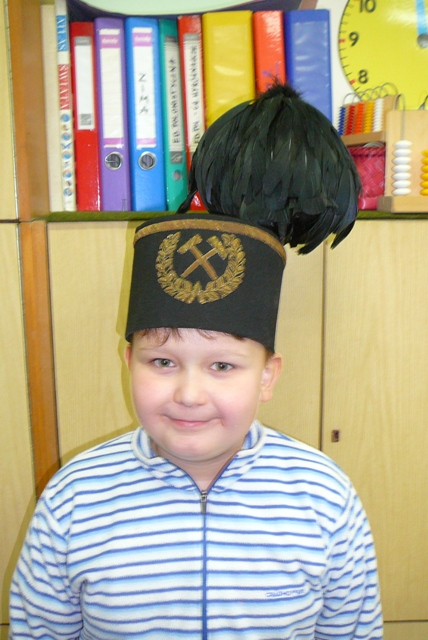 Z okazji górniczego święta tzw. Barbórki uczniowie klas I- III spotkali się z panem Mirosławem Malachem z Mątaw, który w okresie swojej młodości pracował przez 4 lata w jednej z chorzowskich kopalni. Najpierw dzieci obejrzały krótki film o pracy górników, potem zadawały gościowi pytania. Pan Mirosław opowiadał o ciężkiej i niebezpiecznej pracy górników, podawał przykłady gwary śląskiej. Jednak największe zainteresowanie wzbudził galowy mundur górniczy. Piękna czapka z czarnym pióropuszem i marynarka z wyszywanymi złotą nitką kilofem i młotem sprawiły, że uczniowie mieli wielką ochotę zrobić sobie pamiątkową fotografię w tym właśnie stroju. Każdy będzie miał taką szansę , bowiem mundur jeszcze przez kilka dni można oglądać i przymierzać (pod opieką wychowawcy) w klasie drugiej.