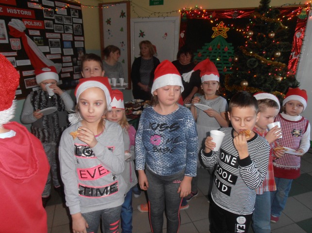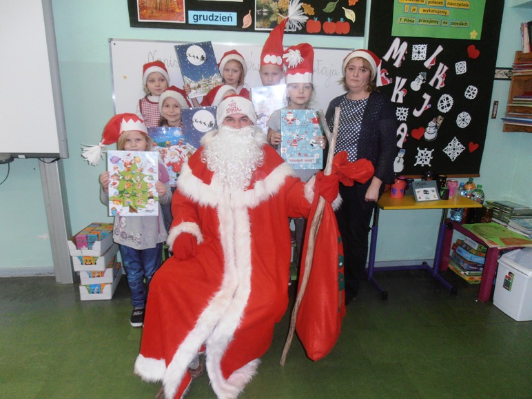 Później wesoło brzmiący dzwonek obwieszczał zbliżającego się Mikołaja. Najmłodsi oczekiwali go z wypiekami na twarzy. Mikołaj zajrzał do każdej klasy, ze wszystkimi uczniami porozmawiał, wysłuchał piosenek i kolęd, rozdawał słodkie adwentowe kalendarze, pozował do pamiątkowych zdjęć.