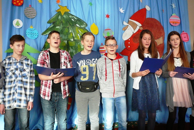 Część artystyczną wypełniły występy uczniów. Czwartoklasiści zaprezentowali inscenizację „Kozucha”, klasa druga przedstawiła teatrzyk cieni o kolędnikach , a także wiersz pt. „Proszę państwa, oto rok”. O oprawę muzyczną zadbali szóstoklasiści, którzy brawurowo zaśpiewali piosenki „Kulig” i „Choinka”. Na zakończenie wszyscy obecni w świetlicy uczestnicy imprezy zaśpiewali „Kanon noworoczny”.