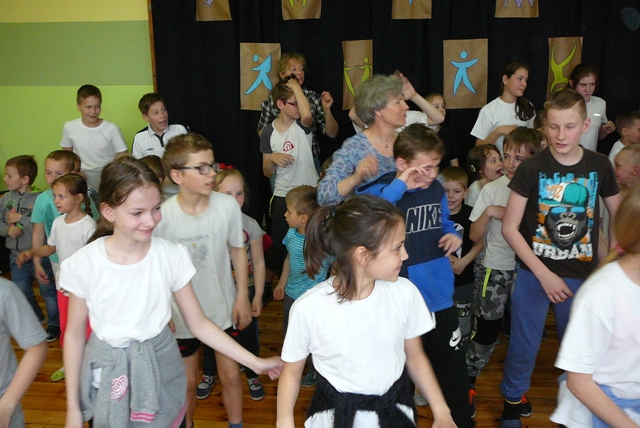 Od kilku już lat obchodzimy w naszej szkole Dzień Tańca. Pomysł na jego organizację nawiązuje do Międzynarodowego Dnia Tańca, który obchodzony jest 29 kwietnia. Ze względu na uroczystości związane z obchodami Święta Konstytucji 3 maja, nasze umiejętności taneczne prezentowaliśmy 6 maja. Każda klasa przygotowała taneczny układ, a komisja konkursowa oceniła zaangażowanie uczniów, zgodność układu choreograficznego z muzyką, znajomość tanecznych kroków i wrażenie ogólne, jakie wywarła klasa na członkach komisji. Królowały tańce dyskotekowe, ale zdarzyła się także zabawa ruchowa przygotowana przez najmłodszych , czy taniec do piosenki o wiośnie. Oprócz pokazów konkursowych zobaczyliśmy także taniec w wykonaniu dzieci uczestniczących w zajęciach kółka tanecznego, a także mieliśmy okazję wspólnie z nauczycielami zatańczyć taniec, którego nauczyła nas klasa piąta.