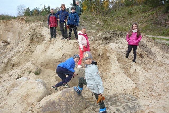 Kolejny punkt jesiennej wyprawy to wspólne drugie śniadanie na świeżym powietrzu. Potem mali tropiciele przyrody wyruszyli na długi spacer po lesie. Tam zachwycało wędrujących niemalże wszystko: miękki mech, kolorowe liście drzew, biała kora na młodych brzozach, szyszki i żołędzie znalezione pod świerkami i dębami. Każdy mógł sprawdzić swoją wiedzę na temat leśnej fauny i flory.