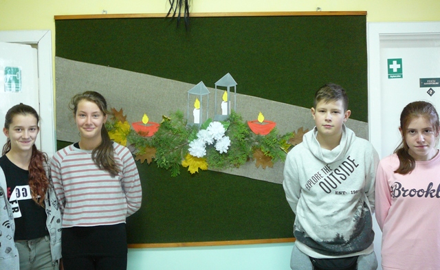 Tradycja obchodzenia święta Halloween jest stosunkowo nowa. W naszej szkole czasami akcentujemy ten dzień traktując to przede wszystkim jako sympatyczną zabawę. Samorząd uczniowski zadbał o stosowną dekorację. Okna na korytarzu przesłoniły zasłony, na kwiatach pojawiły się pajęczyny z pająkami, w kolorowych lampionach paliły się świeczki, na włącznikach oświetlenia przysiadły nietoperze, a z różnych kątów wyzierały małe, uśmiechnięte duszki. Każda klasa miała do wykonania dwa zadania – rozwiązać test tematyczny i wykonać pracę plastyczną przedstawiającą ducha.