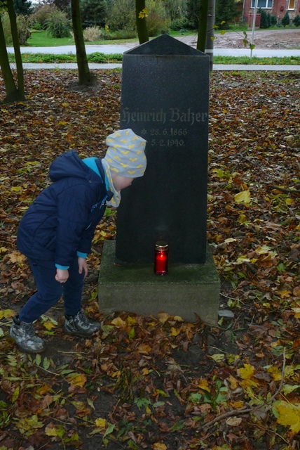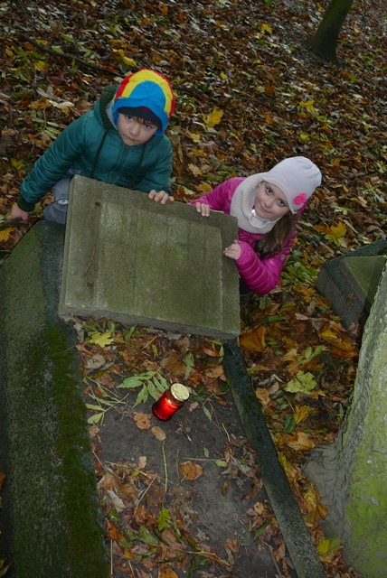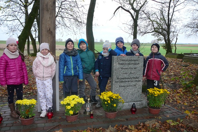 W tym okresie odwiedzamy także cmentarz protestancki. Porządkowaliśmy go w październiku, teraz zapaliliśmy znicze. Dziękujemy panu Adamowi Kubackiemu za ofiarowanie chryzantem. Ich żółte kwiaty i płomyki białych i czerwonych zniczy sprawiły, że cmentarz wyglądał niezwykle odświętnie.