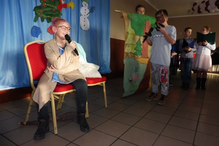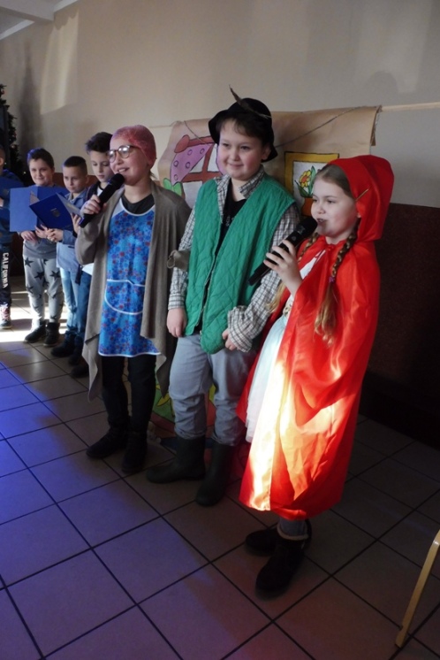 Klasa IV wprowadziła nas w świat bajki przedstawieniem pt: „Czerwony Kapturek”, uczniowie klasy VI i VII stworzyli świąteczny nastrój śpiewając piosenki w języku polskim i angielskim, by następnie przejść do karnawałowych rytmów we wspólnym tańcu.
