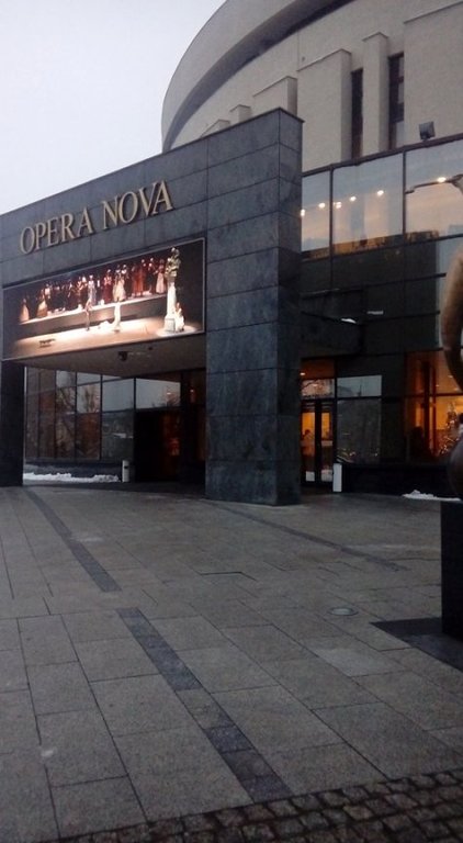 W niedzielne popołudnie (21 stycznia) grupa uczniów naszej szkoły wybrała się do Opery Nova w Bydgoszczy na przedstawienie baletowe pt. „Dziadek do orzechów”. Wśród uczestników wycieczki byli także rodzice oraz nauczyciele. Podróż, mimo dość trudnych warunków atmosferycznych, przebiegła sprawnie i po dwóch godzinach jazdy oczom amatorów muzyki poważnej ukazał się monumentalny budynek bydgoskiej opery. Jest to imponujący obiekt, którego trzy koncentryczne kręgi są malowniczo położone w zakolu Brdy. Ponieważ do spektaklu było jeszcze trochę czasu, część uczniów udała się na rynek Starego Miasta , by podziwiać świąteczne iluminacje. Potem wszyscy spotkali się w holu opery, odebrali bilety i rozpoczęli poszukiwanie wyznaczonych miejsc w dużej sali, o doskonałej akustyce, z amfiteatralną widownią na 803 miejsca. Uwagę przykuwała kurtyna stalowa i kurtyna tekstylna, składająca się z 6 warstw oraz kanał dla orkiestry ( nazywany także fosą orkiestrową lub orkiestronem) ,w którym muzycy orkiestry symfonicznej zaczęli stroić instrumenty.