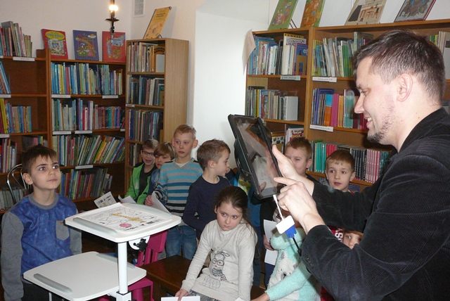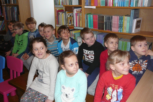 W ostatnim czasie bardzo popularne wśród uczniów naszej szkoły stało się odwiedzanie Gminnej Biblioteki Publicznej w Nowem. Były tam już przedszkolaki, klasa trzecia i przedstawiciele klas starszych. Na lekcję biblioteczną , pod opieką swoich wychowawczyń, udali się także uczniowie klasy pierwszej i drugiej. Pan Janusz niezwykle ciekawie opowiadał o pracy nowskiej biblioteki. Zaprezentował jej księgozbiór , a także elektroniczne karty czytelnika, które ułatwiają pracę bibliotekarzowi. Uczniowie mieli okazję sprawdzić swoją umiejętność głośnego czytania korzystając z interaktywnych książeczek dla dzieci. Potem był czas na kolorowanie zaczarowanych ilustracji, które po sfotografowaniu za pomocą specjalnej aplikacji. ożywały na dużym ekranie.