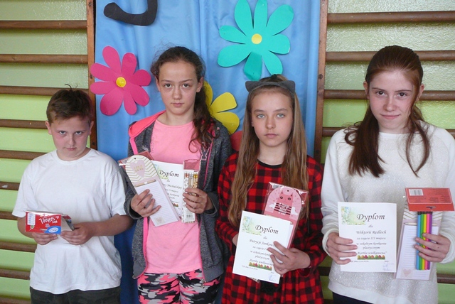 I tak I miejsce zdobyła Patrycja Jankowska z klasy V, drugie miejsce otrzymała Karolina Michalska z klasy V, zaś trzecie miejsce zajęli Wiktoria Redloch z klasy VII i Paweł Michalski z klasy IV. Gratulujemy!!!