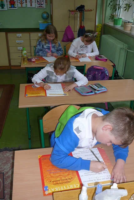 W ostatnie dni kwietnia odbyło się kolejne szkolenie z zakresu udzielania pierwszej pomocy. Trzecioklasiści podczas trzygodzinnego kursu nauczyli się pomagać osobie poszkodowanej, zarówno tej, która jest nieprzytomna, ale oddycha samodzielnie, jak i osobie, która jest niewydolna oddechowo. Uczniowie dość szybko zapamiętali czynności, które tworzą tzw. Łańcuch Przeżycia. Najwięcej emocji wzbudziła resuscytacja krążeniowo – oddechowa. Niełatwo było wykonać poprawne oddechy ratownicze, a i masaż serca wymagał precyzji i niezłej kondycji fizycznej. Na szczęście większość trudności udało się pokonać. Wszyscy uczestnicy szkolenia w obecności instruktora, wychowawczyni , pani Ani i pani Oli z powodzeniem zdali test sprawdzający wiedzę i zaprezentowali dobry poziom umiejętności ratowniczych. Gratulujemy!