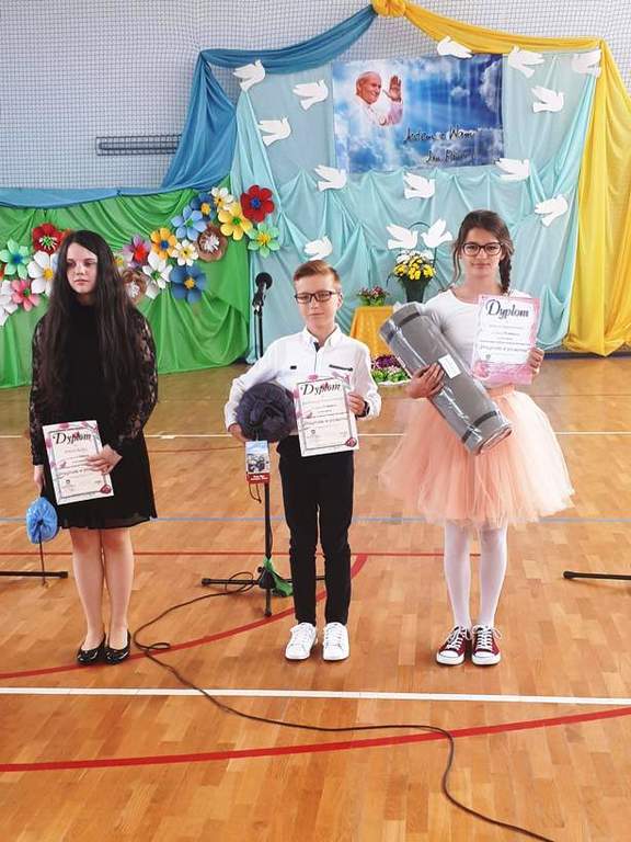 Od wielu już lat bierzemy udział w Powiatowym Konkursie Piosenki Ekologicznej organizowanym przez szkołę w Wielkim Komorsku. W tym roku w konkursie wzięło udział 94 wykonawców z 10 placówek oświatowych. Naszą szkołę reprezentowała Wiktoria Kaźmierczak z klasy V, która w kategorii solistów klas IV- VI zajęła III miejsce. 18 maja odbyła się uroczystość wręczenia nagród i dyplomów. Wiktorii serdecznie gratulujemy!