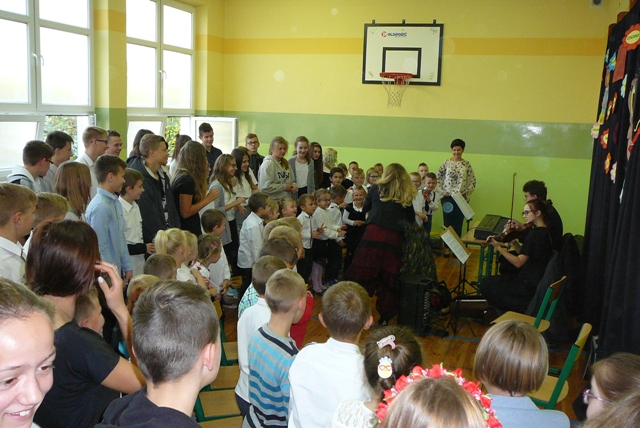 Wczoraj po raz pierwszy w tym roku szkolnym odwiedzili nas muzycy z Filharmonii Pomorskiej w Bydgoszczy. Wraz z nimi udaliśmy się w muzyczną podróż do słonecznej Italii. Mieliśmy okazję posłuchać kompozycji Antonio Vivaldiego, Luigiego Boccheriniego, Giuseppe Verdiego, Gioacchino Rossiniego… Zobaczyliśmy także różne techniki grania na skrzypcach, wysłuchaliśmy arii operowych, a także wykonaliśmy prosty taniec do fragmentu „Tarantelli Napolitana” ( Tarantelli Napoletana) Gioacchino Rossiniego.