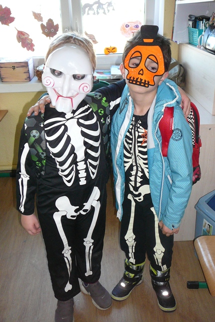 Dzisiaj w szkole pojawiły się miłe akcenty związane z coraz popularniejszym świętem Halloween. Samorząd uczniowski zaproponował klasom konkurs na „najstraszniejsze halloweenowe” okno. W związku z tym na okiennych szybach pojawiły się dynie ze strasznymi zębiskami, pajęczyny z pająkami, duszki, czarownice na miotle, czarne koty i nietoperze… Oprócz tego wielu uczniów przywdziało „straszne” maski i inne „bardzo straszne” elementy garderoby. Dostarczyło to nam wiele radości i dobrej zabawy.