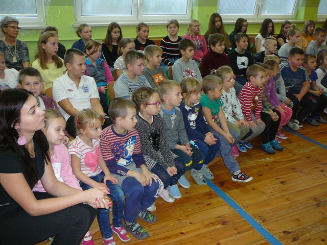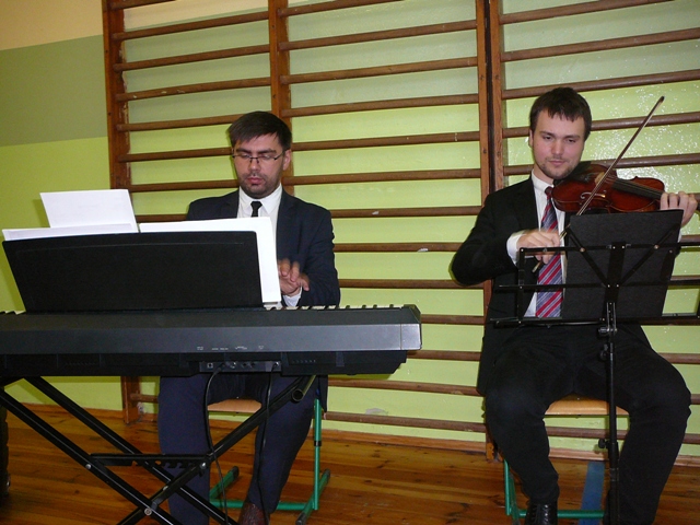 W dniu dzisiejszym po raz pierwszy w tym roku szkolnym odwiedzili naszą szkołę muzycy z Filharmonii Pomorskiej w Bydgoszczy. W związku ze zbliżającym się Świętem Niepodległości cały program poświęcony był muzyce polskiej. Najpierw mieliśmy okazję wysłuchać kompozycji Fryderyka Chopina i Michała Kleofasa Ogińskiego . Potem artyści zaproponowali nam muzykę filmową. Z przyjemnością wysłuchaliśmy walca z filmu „Noce i dnie”. Wspólnie zaśpiewaliśmy jedną z pieśni legionowych a także piosenkę Marka Grechuty „Dni, których nie znamy”. Na zakończenie w znakomity nastrój wprawiła nas muzyka skomponowana do znanych polskich dobranocek.