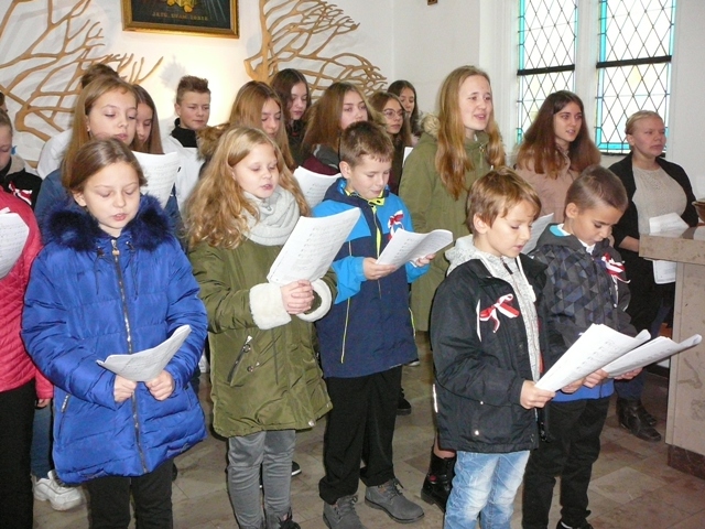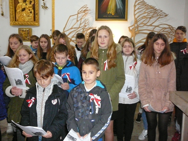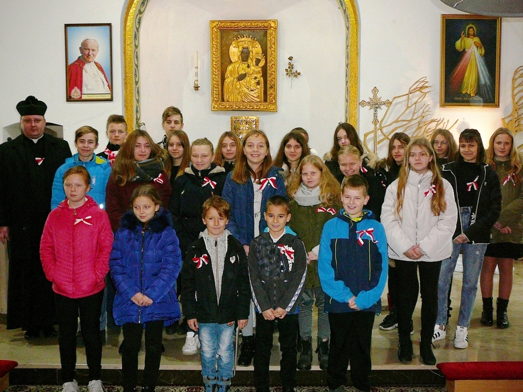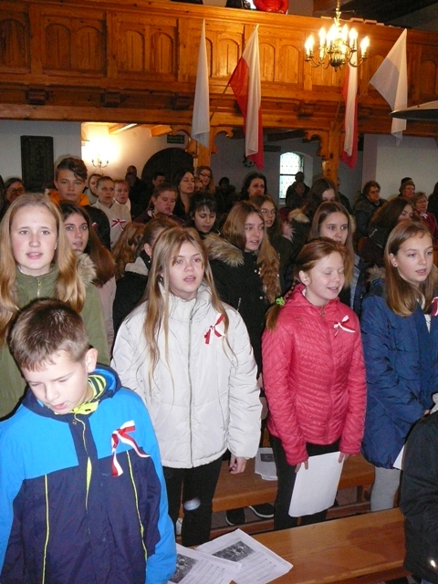 Po raz drugi już skorzystaliśmy z zaproszenia proboszcza Parafii Mątawy księdza Damiana Florczaka i podczas mszy odprawionej w intencji ojczyzny mieliśmy okazję zaśpiewać kilka pieśni legionowych. Nasz szkolny chórek stawił się prawie w komplecie , a jego członkowie dołożyli wszelkich starań, aby pieśni patriotyczne zabrzmiały jak najpiękniej. Śpiewanie, do którego włączyli się obecni na mszy parafianie, wywołało wiele pozytywnych emocji i sprawiło radość wszystkim uczestnikom tego niezwykle uroczystego nabożeństwa.