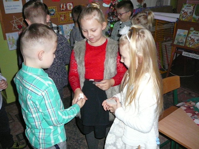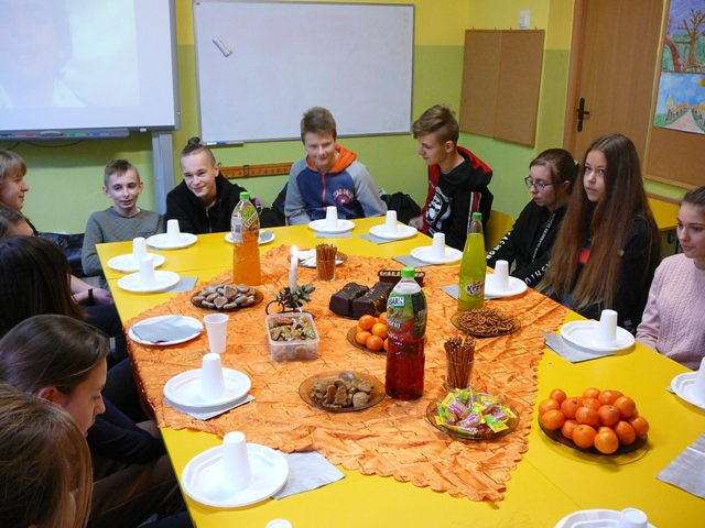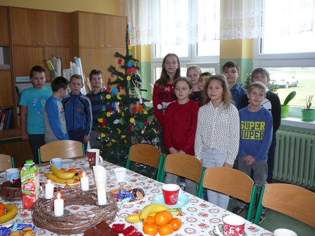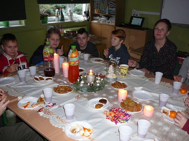 W ostatnim tygodniu nauki podczas godzin wychowawczych wszystkie klasy zorganizowały sobie świąteczne spotkania. Na stole pojawiły się smakołyki, zapalone zostały świece. Niektórzy uczniowie obdarowywali się wzajemnie upominkami. Wszędzie rozbrzmiewały kolędy. Dzielenie się opłatkiem i składanie sobie życzeń były bardzo wzruszającym elementem klasowego świętowania.