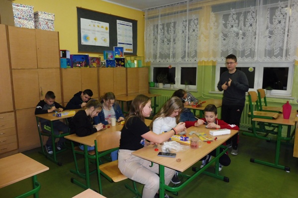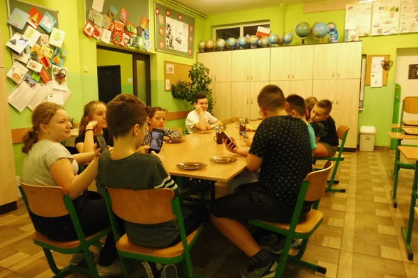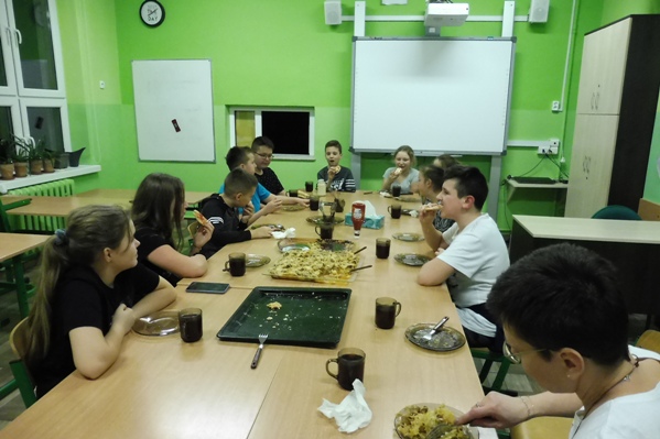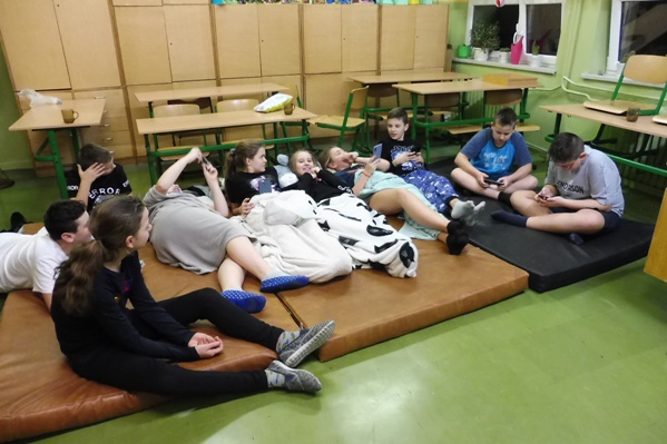 Przyszła kolej na klasę VI… 17.stycznia pani Bożena Trzcińska wraz ze swoim mężem i panią Wiolettą Opacką zorganizowali nocowanie w szkole dla klasy VI. Wszyscy zaopatrzeni w śpiwory, piżamy, słodycze i inne gadżety stawili się o godzinie 18:00 w szkole. Na początku pani Trzcińska przedstawiła sprawy organizacyjne i zasady bezpieczeństwa. Wszyscy wspólnie spędzali czas na zabawach, grach, oglądaniu filmu i innych szaleństwach. Na kolację były pyszne pizze przygotowane przez mamy uczniów. Plany były ambitne i zakładały, że wszyscy dobrze się wyśpią. Ale na planach tylko poprzestało, bo wszyscy usnęli dopiero nad ranem. Cała klasa była bardzo zadowolona i dobrze wspomina wspólnie spędzony czas.