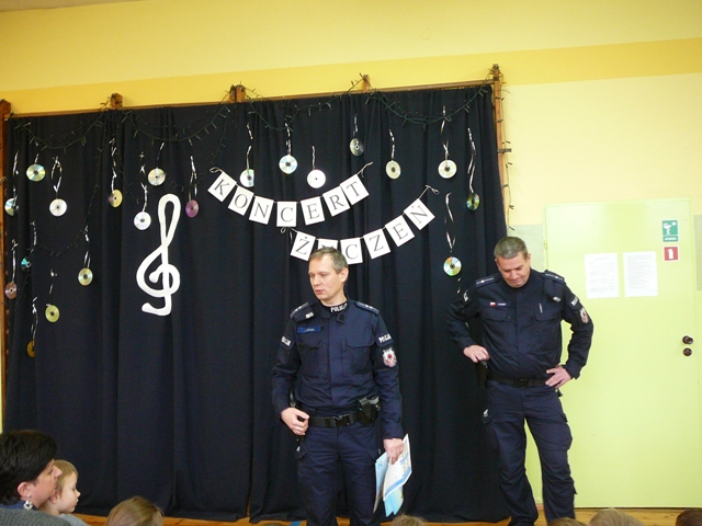 Dzisiaj w naszej szkole odbyło się spotkanie z policjantami, którzy przypomnieli nam o zasadach bezpiecznego wypoczynku w czasie zimowych ferii. Zwrócili też uwagę na konieczność zachowania ostrożności w nawiązywaniu znajomości. Przypomnieli o zasadach bezpiecznego korzystania z Internetu. Przestrzegli przed podejmowaniem prób zażywania substancji narkotycznych, które stanowią zagrożenie dla naszego zdrowia i życia. Podkreślali także, jak ważne dla naszego bezpieczeństwa jest noszenie kamizelek i znaczków odblaskowych oraz poruszanie się po drodze wyposażonym w sprawne światła rowerem.