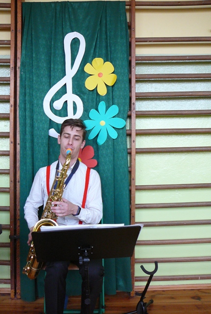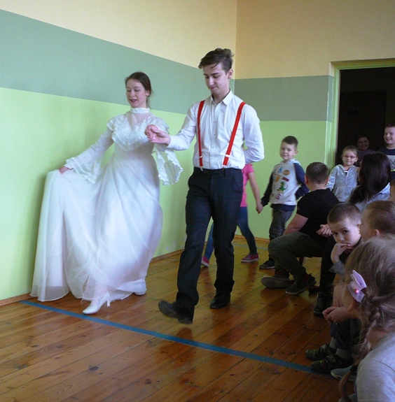 26 lutego po raz kolejny spotkaliśmy się na audycji muzycznej. Tym razem wraz z muzykami z Filharmonii Pomorskiej w Bydgoszczy mieliśmy okazję przyjrzeć się bliżej historii tańca. Towarzyszyła nam muzyka grana na instrumencie klawiszowym i saksofonie, a także pokaz wybranych tańców historycznych, ludowych i towarzyskich. Tancerka pani Maria wykonała dla nas menueta, polkę, walca, swinga. Nauczyliśmy się również podstawowego kroku cza- czy.