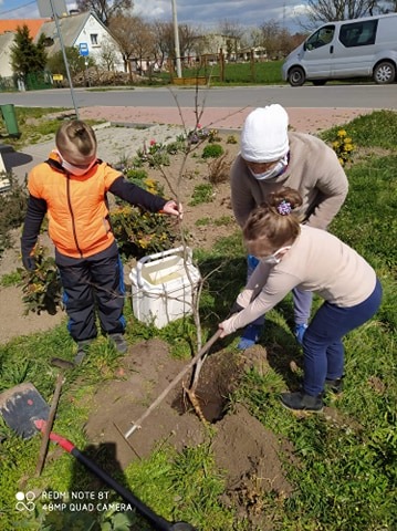 Z okazji przypadającego 22 kwietnia Dnia Ziemi, Dorian Pstuś z siostrą Nikolką i swoją mamą posadzili drzewko w Mątawach. Wykonali to piękne zadanie w imieniu klasy II i III. Pozostali uczniowie podobne uczynki dla Ziemi ofiarowali w swoich ogrodach. Dodatkowym podarunkiem dla Matki Ziemi były prace plastyczne, na których nasza planeta jest czysta, radosna i cudownie zielono-niebieska. Tego Jej i sobie życzymy.