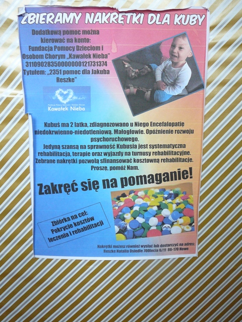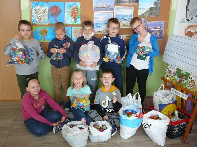 Dzieci z klas 0- 3 pospieszyły na pomoc Kubusiowi, dwuletniemu chłopcu z Nowego, który ma poważne kłopoty ze zdrowiem. Uczniowie włączyli się w zbieranie plastikowych nakrętek. Tym sposobem przyczyniają się do pozyskania funduszy na kosztowną rehabilitację. Jednocześnie klasy rywalizują między sobą, która z nich uzbiera tych nakrętek więcej. Zbiórka potrwa do końca października. Oczywiście, gdyby uczniowie z klas starszych chcieli przyłączyć się to tej akcji, mogą to uczynić.