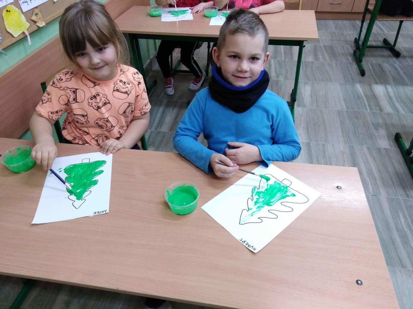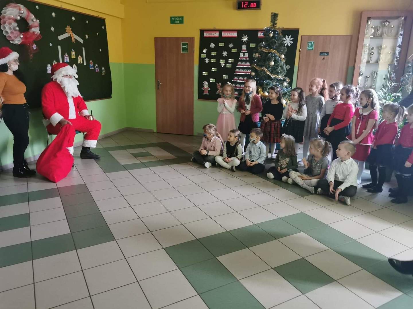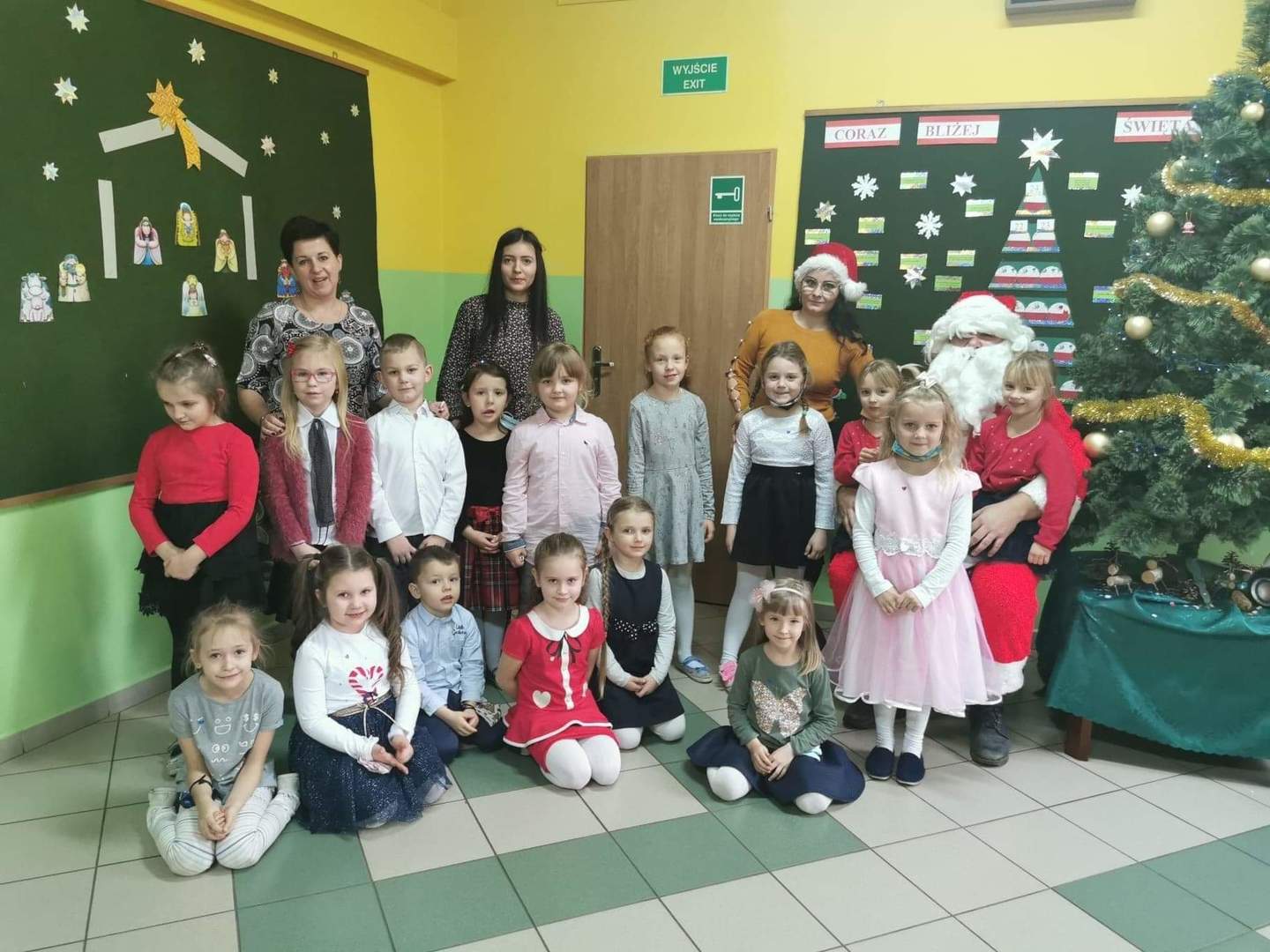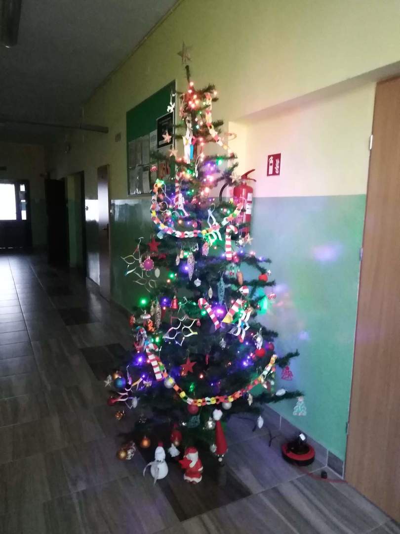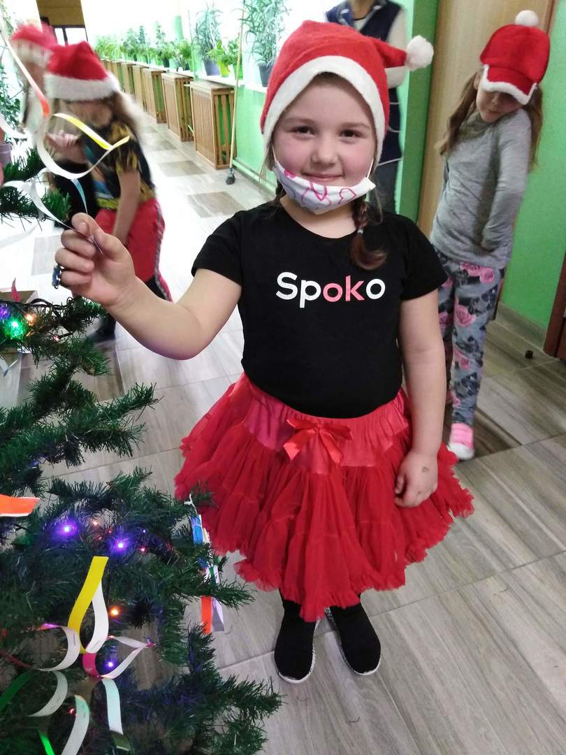 Za kilka dni świętować będziemy Boże Narodzenie. Przedszkolacy zadbali o to, aby w szkole zapanowała świąteczna atmosfera. Zrobili kolorowe łańcuchy, które zawiesili na rozświetlonej lampkami choince. Specjalnymi, rosnącymi farbami namalowali świąteczne drzewka, a z papierowego talerzyka zrobili głowę Mikołaja. Ozdabiali także kolorowym lukrem pierniczki. Natomiast dzisiaj rzecz się stała niesłychana – do najmłodszych dzieci w naszej szkole zawitał osobiście św. Mikołaj przynosząc w wielkim worku upominki.