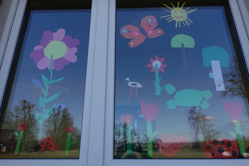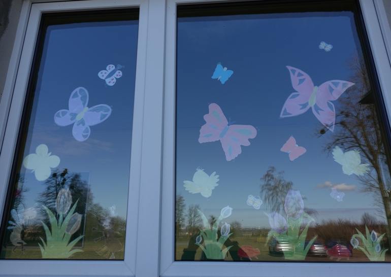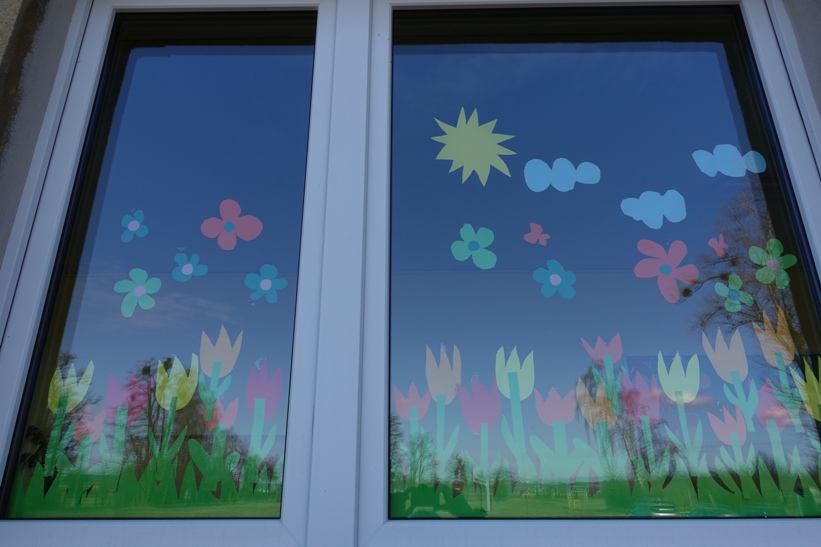 W ubiegłym tygodniu samorząd uczniowski zaprosił uczniów klas 0-III do wzięcia udziału w konkursie na najpiękniejsze wiosenne okno. Bardzo szybko na szybach okiennych korytarza pojawiły się wiosenne dekoracje. Wprawdzie z powodu przejścia na zdalne nauczanie nie udało się rozwiązać konkursu, jednak kolorowe kwiaty, motyle, owady sprawiły, że w szkole zrobiło się weselej i prawdziwie wiosennie.