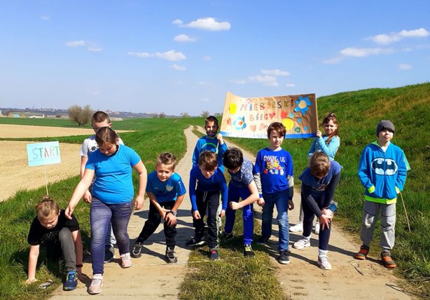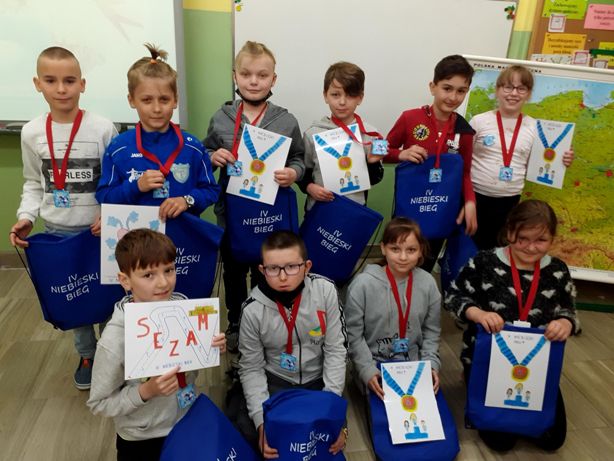 Uczniowie klasy III wzięli udział w Niebieskim Biegu, imprezie charytatywnej organizowanej przez Stowarzyszenie Pomocy Osobom Autystycznym SEZAM w Grudziądzu. Zadaniem dzieci było pokonanie trasy 500m - biegiem, truchtem, marszobiegiem. Trasę odmierzyliśmy na drodze przy wale i 28 kwietnia uczniowie podjęli wyzwanie. Sprzyjała nam pogoda i dobre humory. Do osiągnięcia celu dopingował szczytny cel. Wszystkie dziewczęta i chłopcy dzielnie poradzili sobie z pokonaniem trasy. Kilka dni po tym wydarzeniu trzecioklasiści otrzymali medale, dyplomy i pamiątkowe upominki. Bardzo dziękujemy mamie Ani za aktywną współpracę przy organizacji tej imprezy.