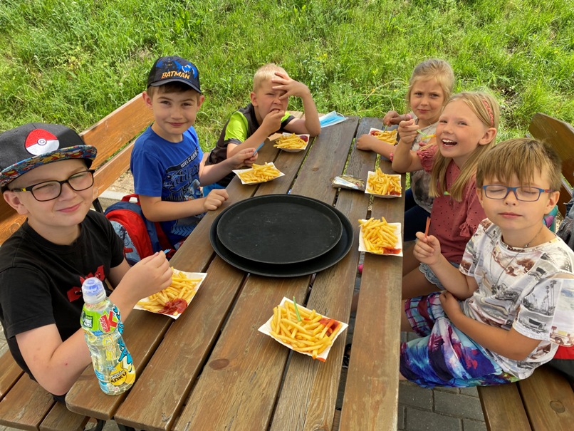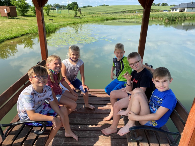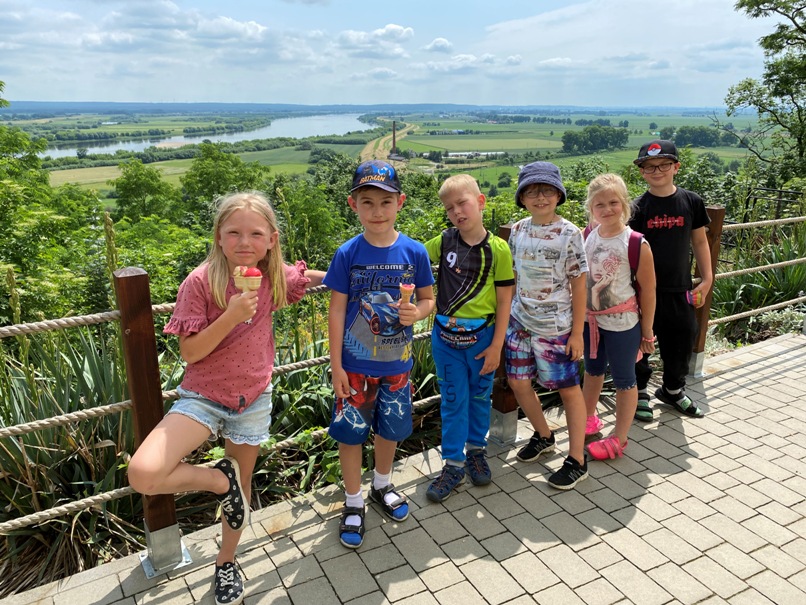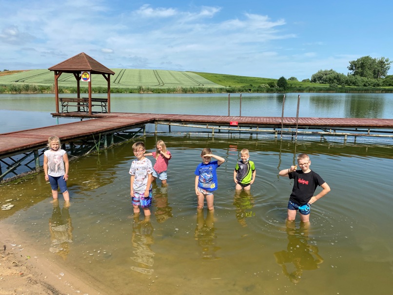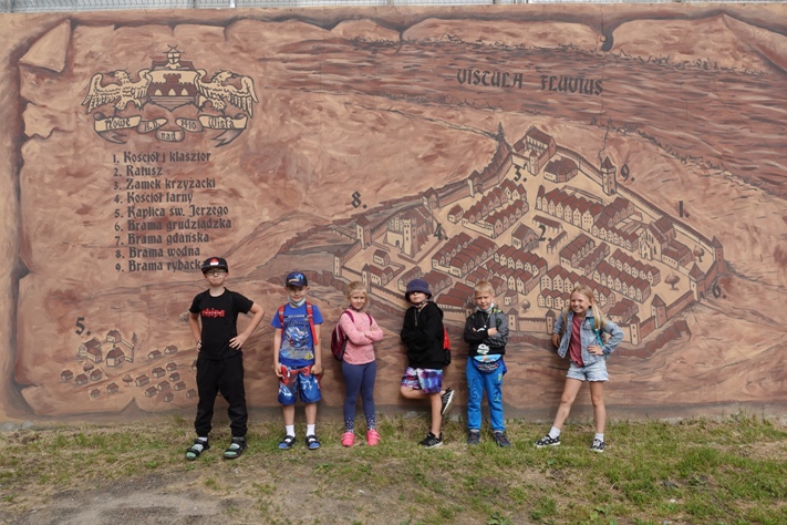 Korzystając z pięknej pogody uczniowie klasy drugiej udali się na krótką wycieczkę do Nowego. Szkolnym autobusem dojechali do Kończyc, skąd pieszo i żwawo ruszyli Kniatkiem i ulicą Wiślaną do miasta. Po drodze zatrzymali się przy kapliczce św. Wojciecha – patrona rybaków. Zdjęcia uwieczniły ich pobyt na nowskim rynku. Na krótki odpoczynek młodzi turyści zatrzymali się w kawiarni „Roma”, skąd dość szybko ruszyli zwiedzić gotycki kościół, obejrzeć średniowieczne mury obronne i zejść do fosy. Przyjemny chłód znaleźli nad Jeziorem Czarownic, gdzie z trudem powstrzymywali się, by nie zażyć pełnej kąpieli. Brodzenie w wodzie do kolan musiało tym razem wystarczyć. Po skromnym posiłku dzieci wyruszyły w drogę powrotną z małym przystankiem na lody w „Wachlarzu Smaków”, skąd mogły podziwiać przepiękny widok na Wisłę. Wszyscy jednoznacznie uznali, że wycieczka, choć krótka, była bardzo udana.