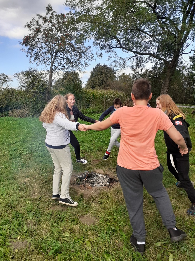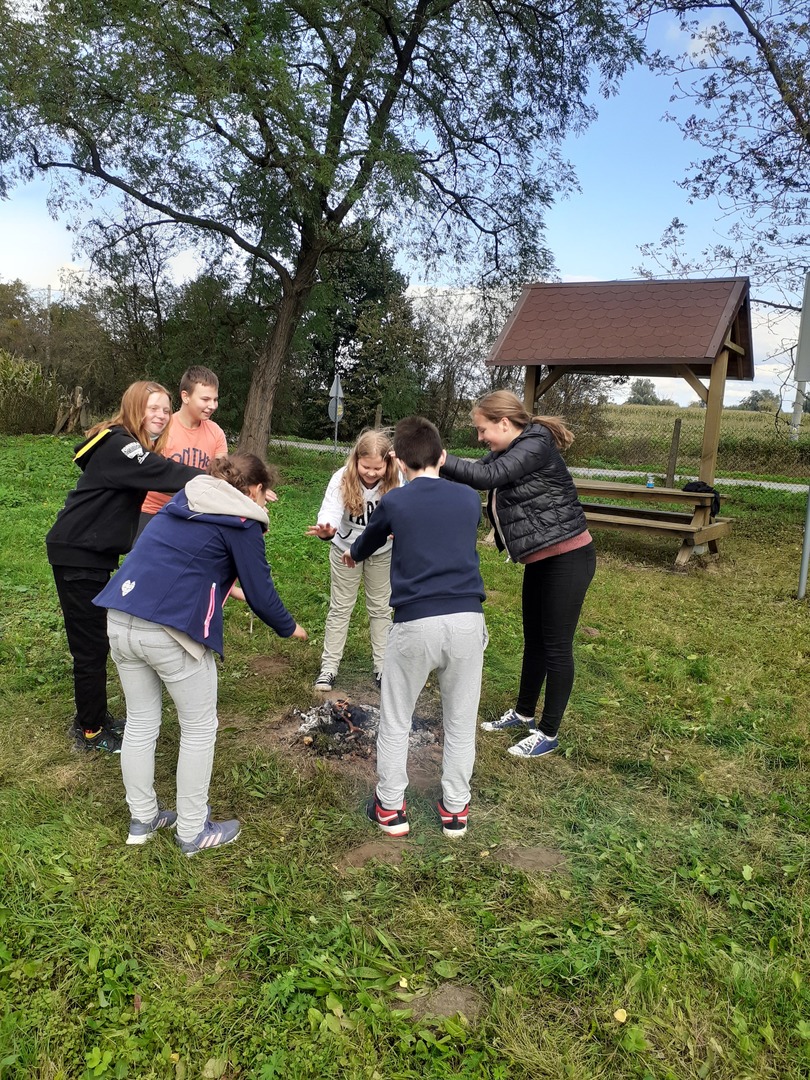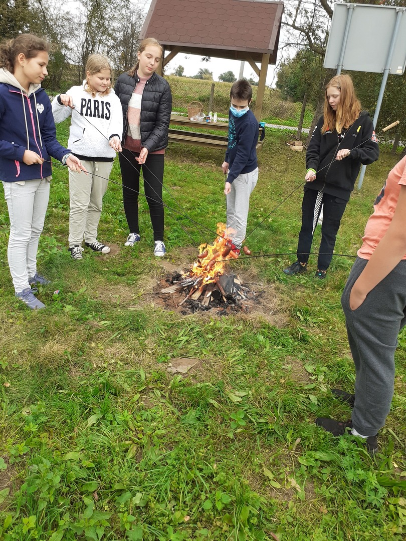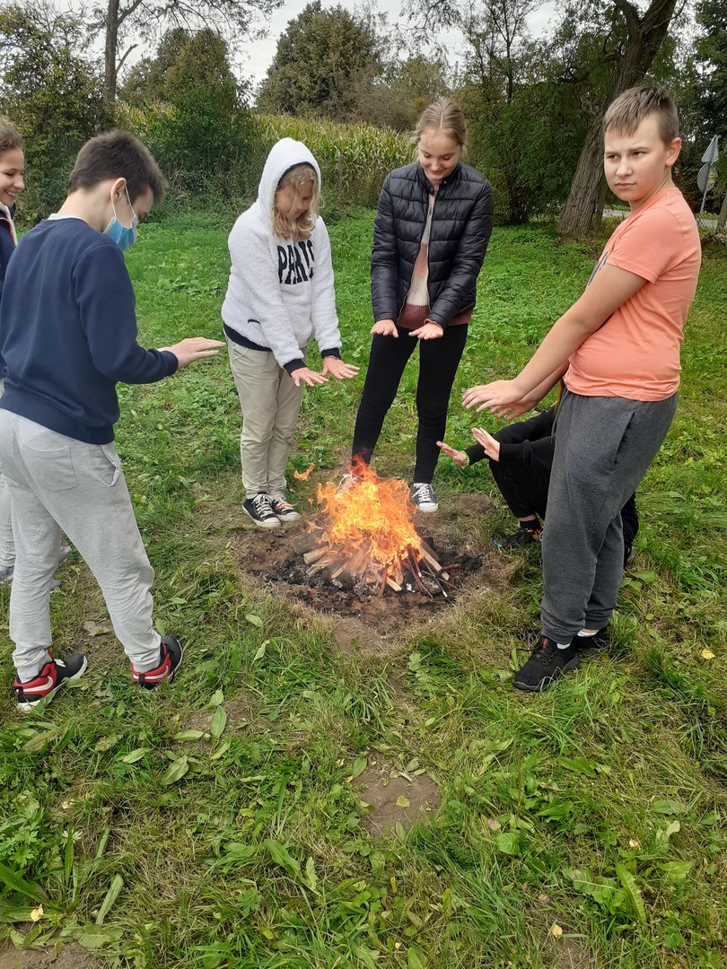 Dnia 20 września klasa VII zorganizowała ognisko integracyjne. Dzień był słoneczny, ale w powietrzu czuło się mróz. Rozpaliliśmy ognisko, piekliśmy kiełbaski i chleb. Wszystko nam bardzo smakowało szczególnie grzanki posmarowane ketchupem. Zabawy i tańce przy ognisku rozgrzały nas bardzo w ten chłodny dzień. Miło spędziliśmy czas na świeżym powietrzu. Czekamy na kolejną okazję, by wspólnie miło spędzić czas.