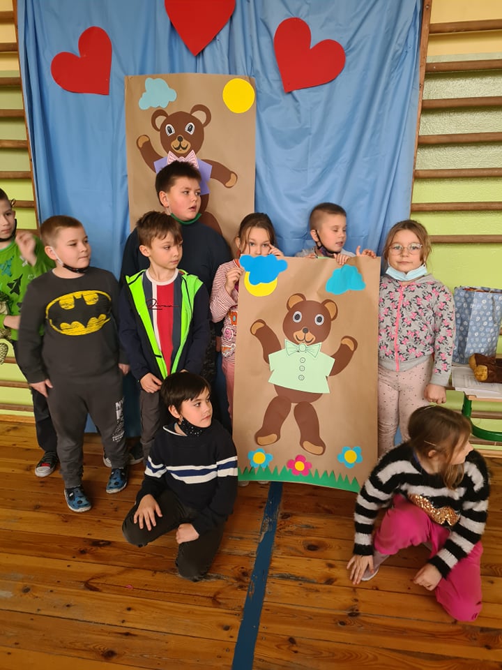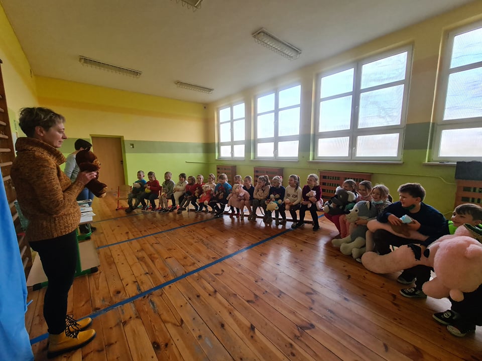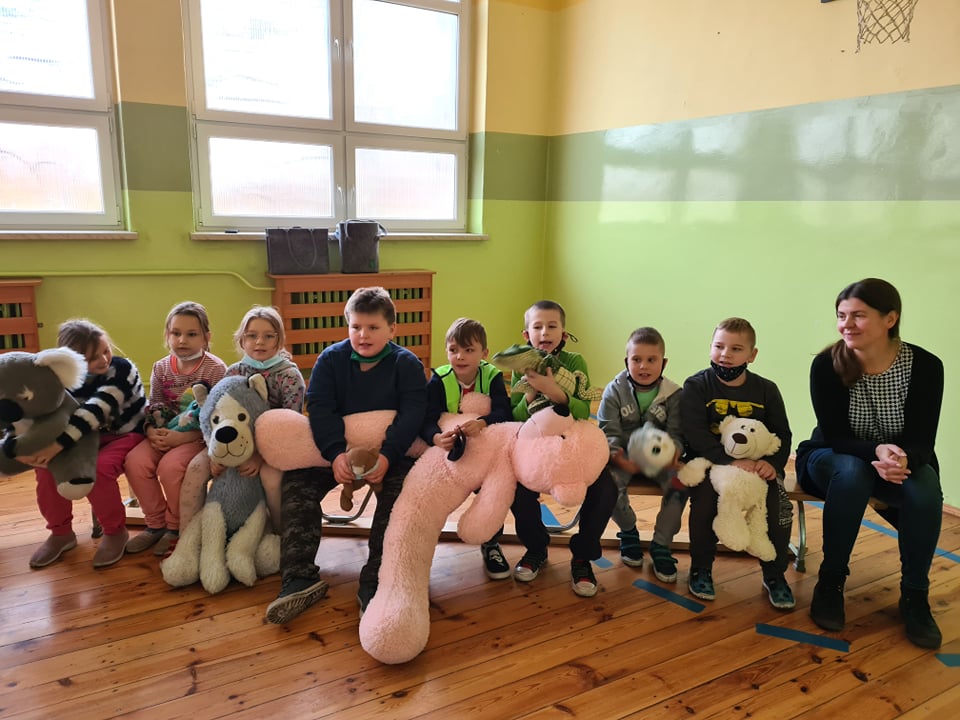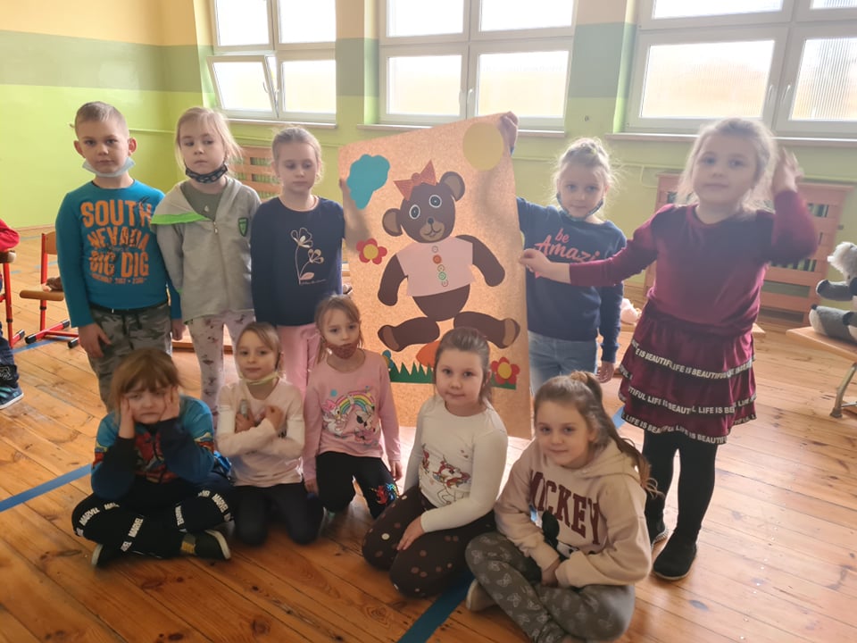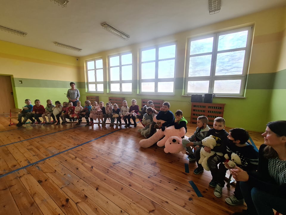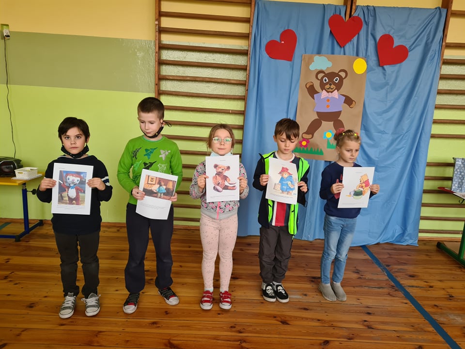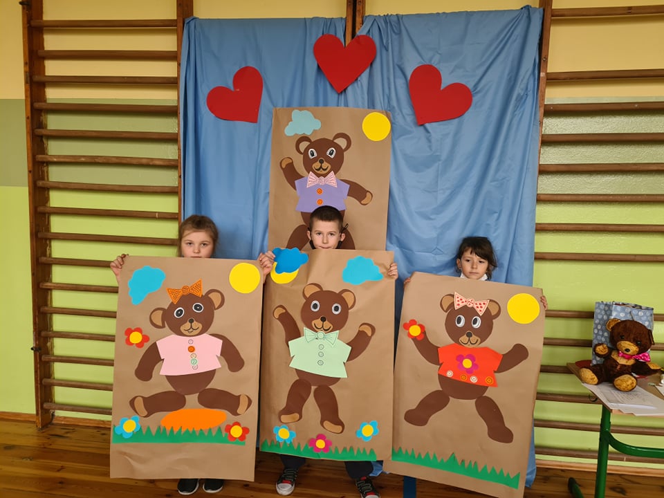 25 listopada dzieci z oddziału przedszkolnego i uczniowie klasy I i II wraz ze swoimi ukochanym przytulankami świętowali Dzień Pluszowego Misia. Poznały historię tego święta, wspólnie śpiewały "misiowe" piosenki, z misiem Tulisiem przeszły krótki kurs przytulania, przypominanie zostały różne misie i niedźwiadki z bajek i książek. Na zakończenie tego niezwykłego spotkania każda grupa stworzyła plakat bohatera dnia.