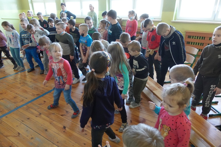 W klimat zimowych dyscyplin wprowadzili nas uczniowie klasy I śpiewając piosenkę o zimowych zabawach.