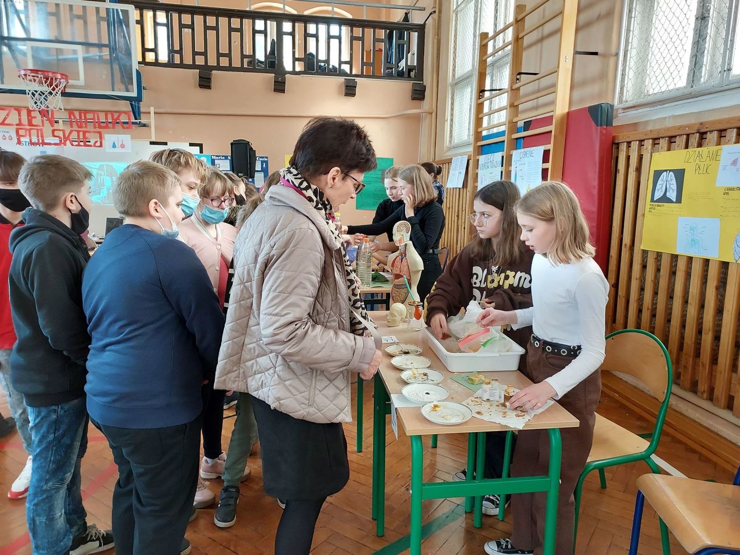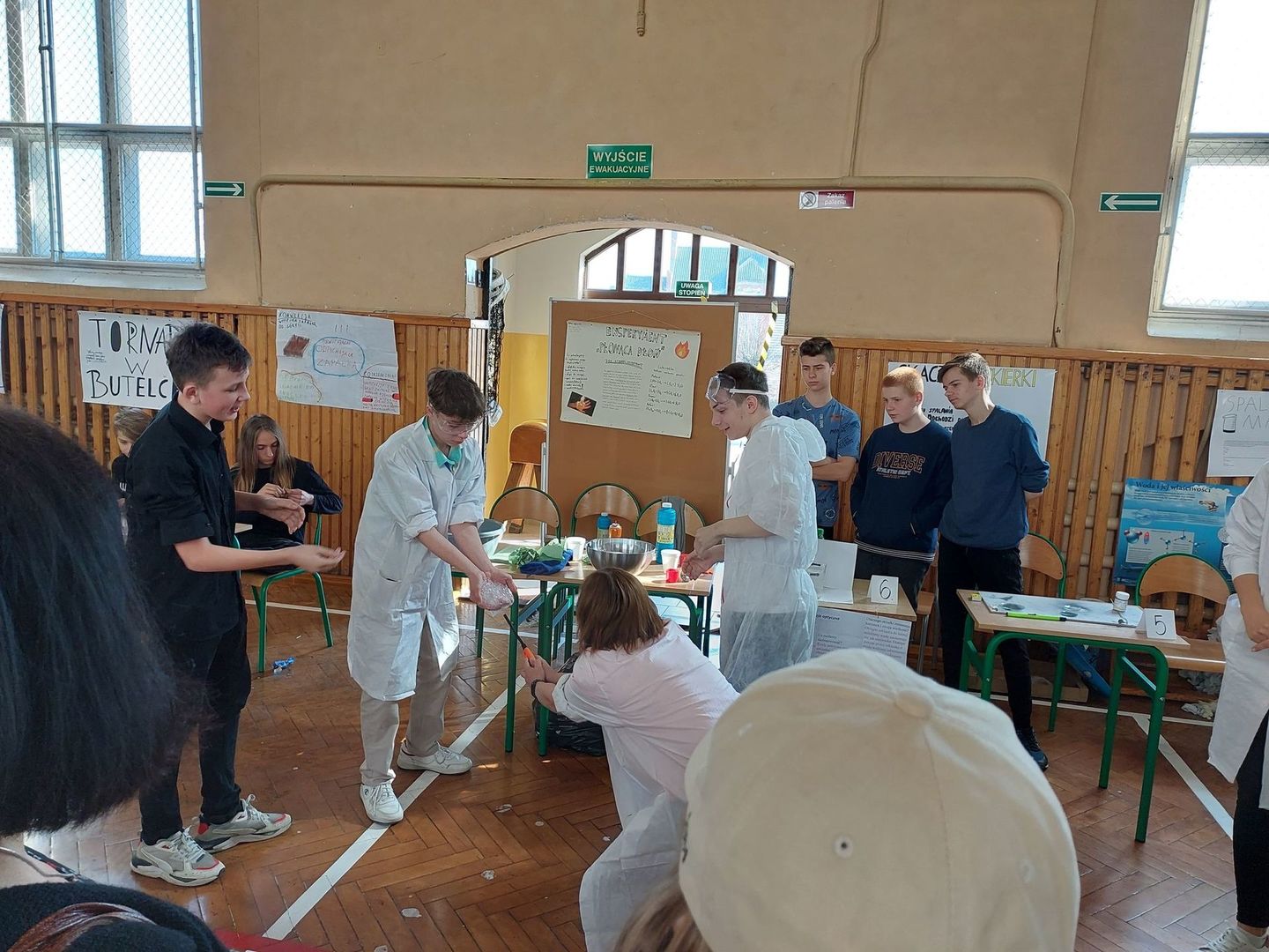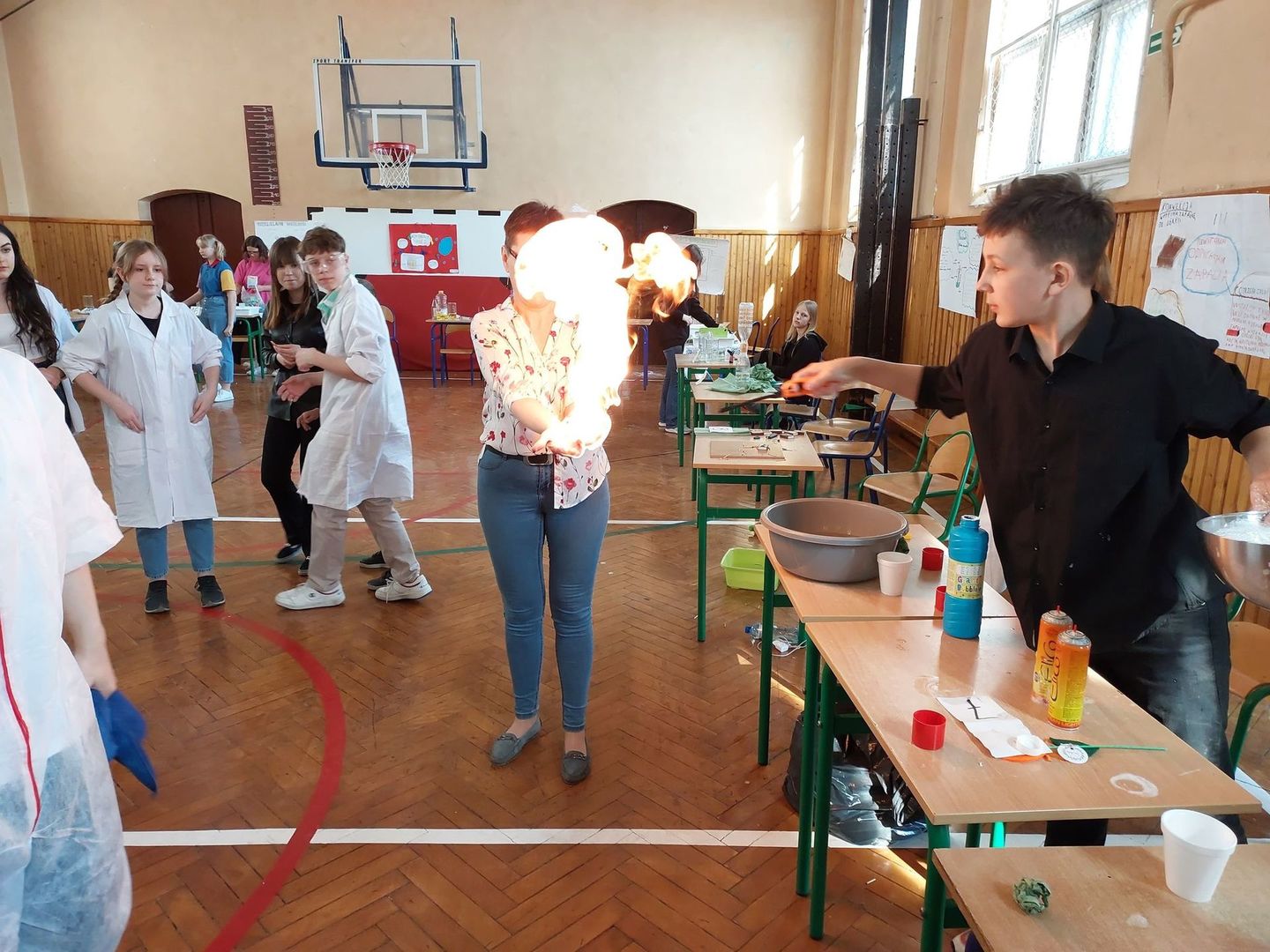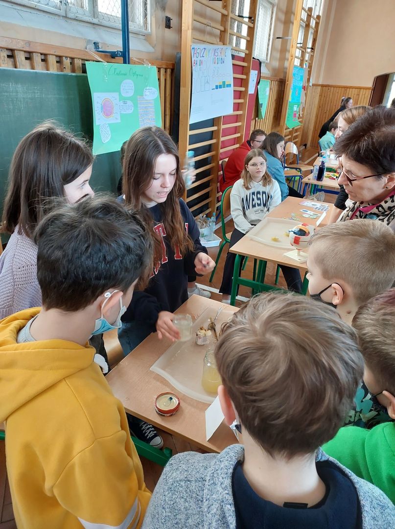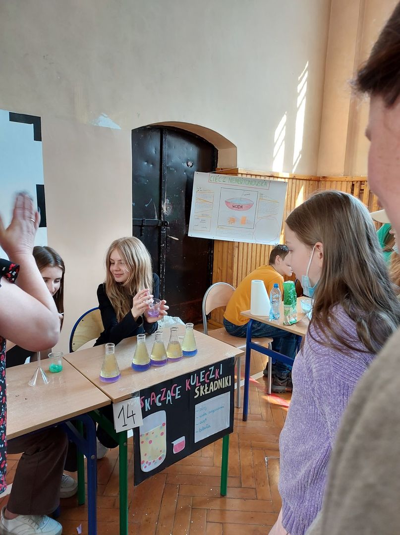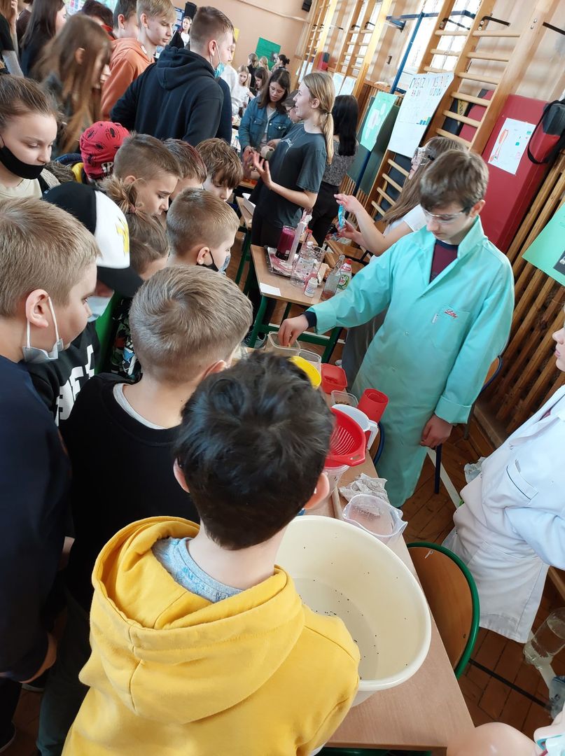 Tam w sali gimnastycznej odbył się Dzień Nauki. Uczniowie nowskiej szkoły wraz z nauczycielami zorganizowali ciekawy pokaz eksperymentów chemicznych, biologicznych i fizycznych. Po obejrzeniu wszystkich stanowisk młodzież głosowała na najbardziej ciekawy eksperyment. Wspólnie miło spędziliśmy czas.