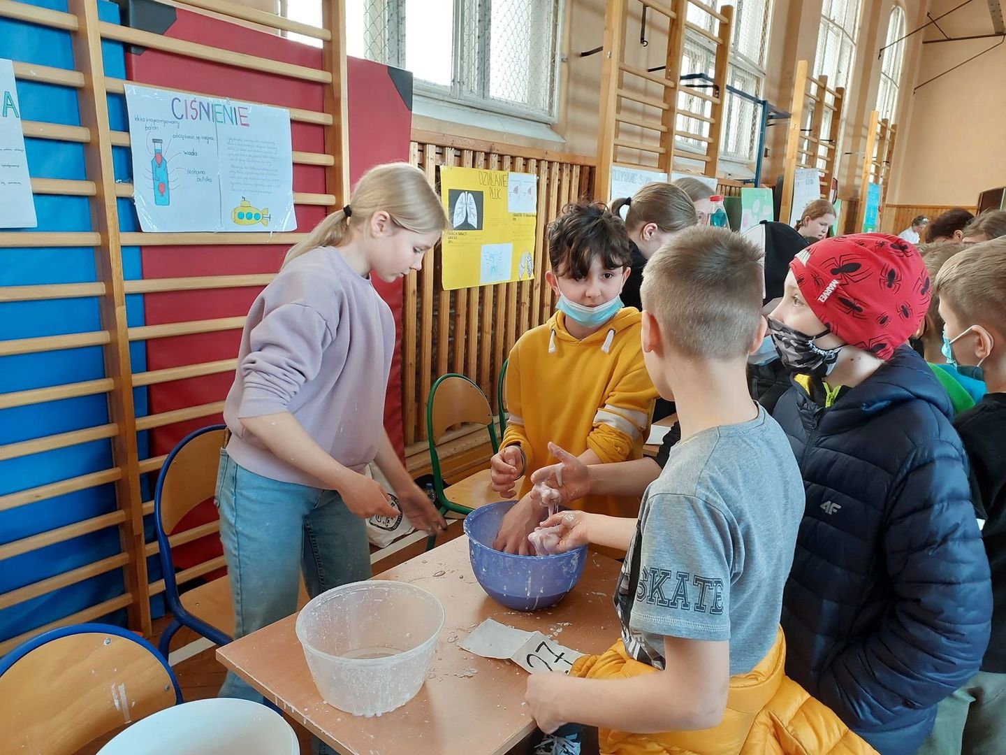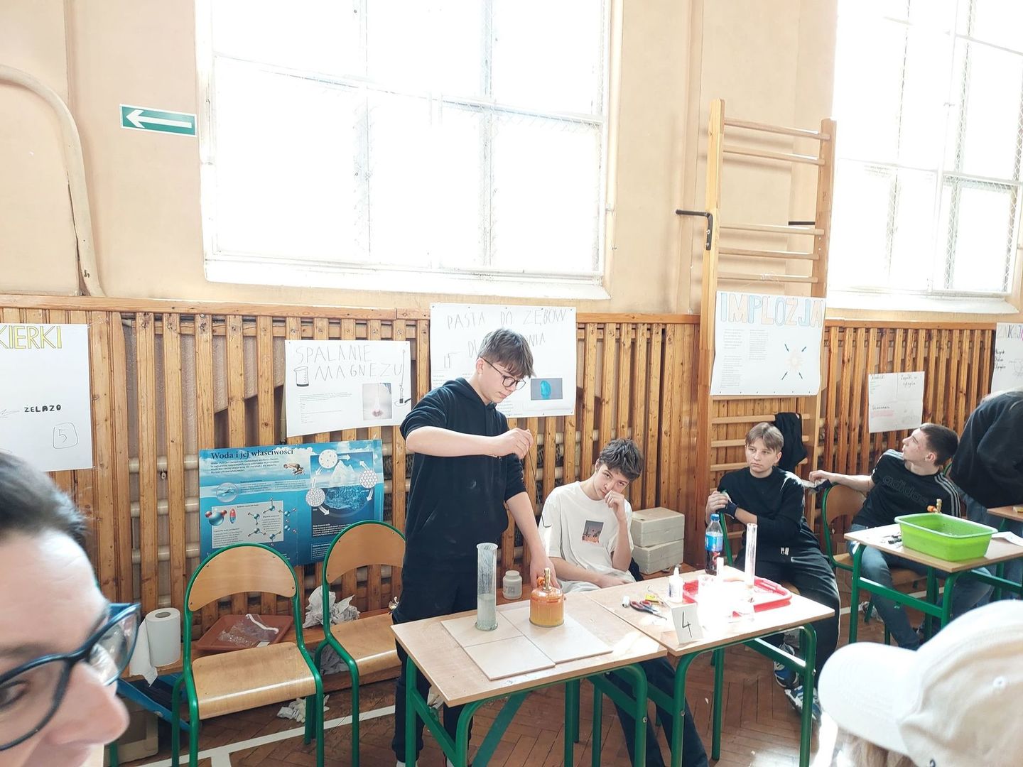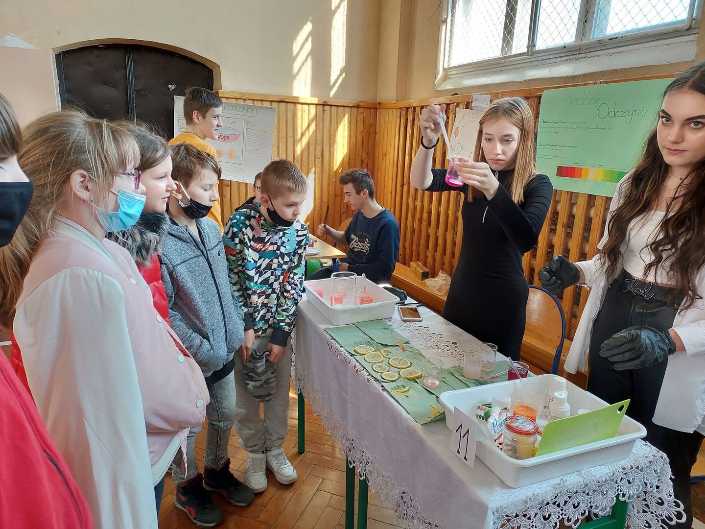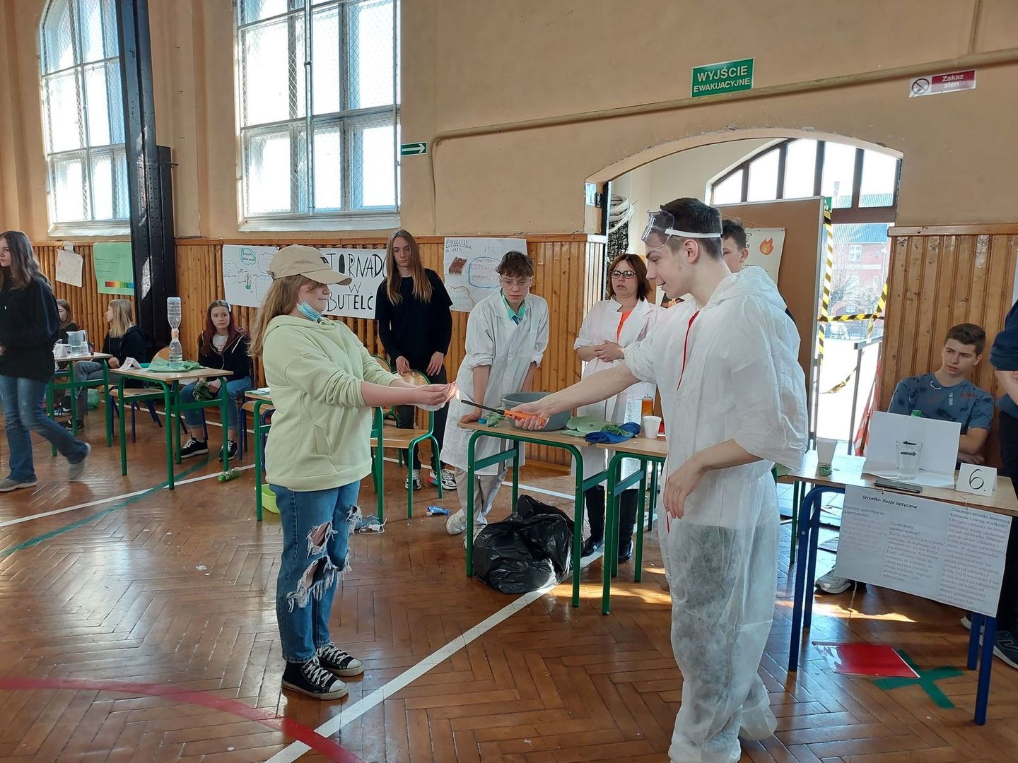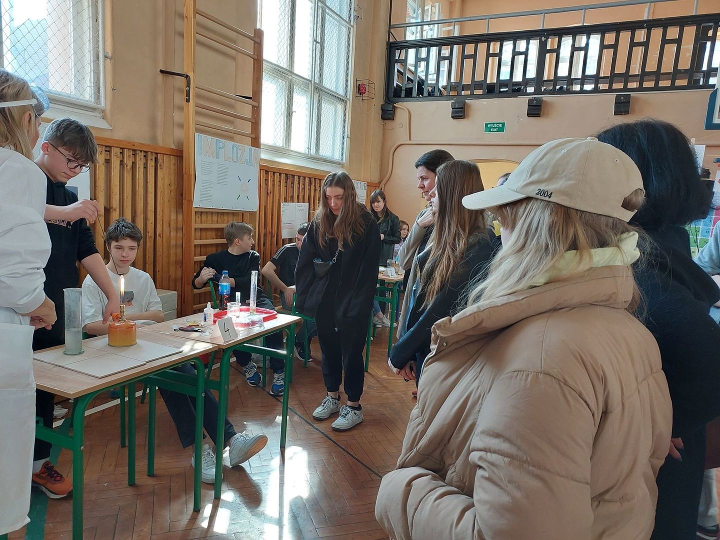 Tam w sali gimnastycznej odbył się Dzień Nauki. Uczniowie nowskiej szkoły wraz z nauczycielami zorganizowali ciekawy pokaz eksperymentów chemicznych, biologicznych i fizycznych. Po obejrzeniu wszystkich stanowisk młodzież głosowała na najbardziej ciekawy eksperyment. Wspólnie miło spędziliśmy czas.