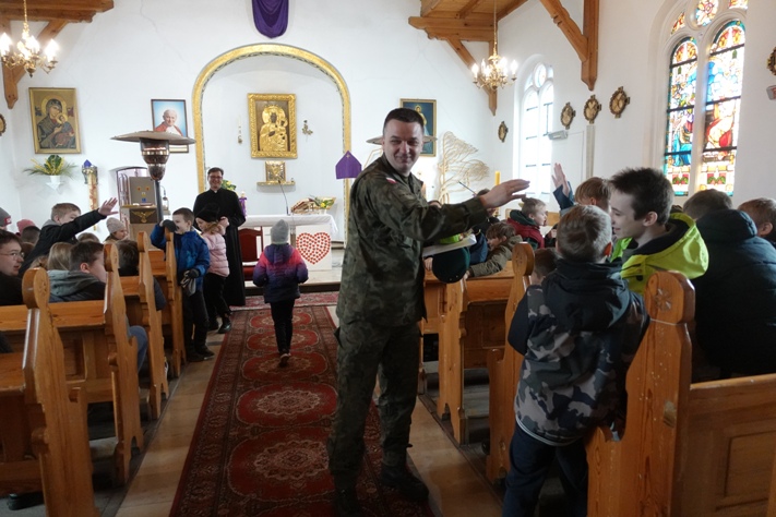 Za nami trzy dni rekolekcji. Był to bardzo interesujący i urozmaicony czas. Proboszcz ksiądz Damian Florczak zaprosił policjantów, panią psycholog i żołnierza Wojska Polskiego. Zadawaliśmy naszym gościom pytania, uważnie słuchaliśmy odpowiedzi. Wzbogaciliśmy naszą wiedzę nt. pracy policjantów. Rozmawialiśmy o emocjach. Uzyskaliśmy wiele informacji o żołnierskiej służbie.