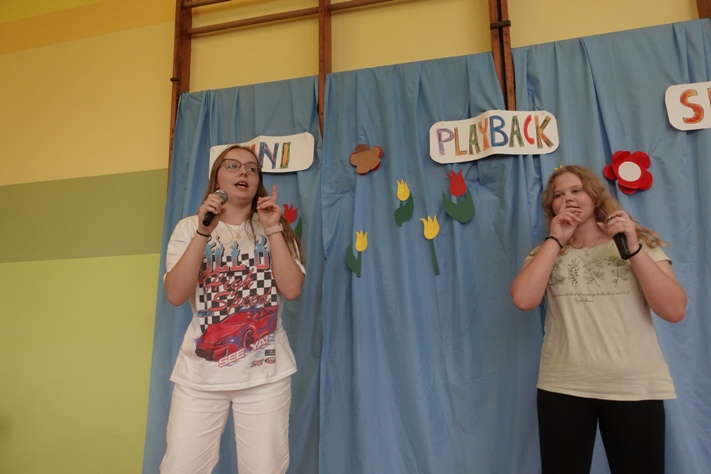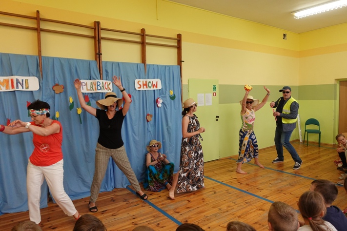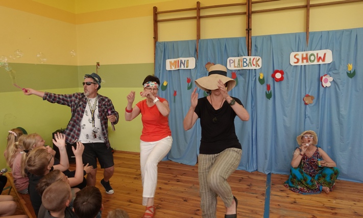 Wakacje tuż, tuż… Już dzisiaj mogliśmy poczuć ich radosny klimat. Mini play back show okazał się wspaniałą zabawą zarówno dla występujących jak i dla publiczności. Zespół nauczycieli doskonale oddał nastrój utworu „Holidays so beautiful” . Potem grupa „Walk the moon”, Shakira i wielu innych wykonawców dostarczyło nam świetnej zabawy, za co dziękujemy!