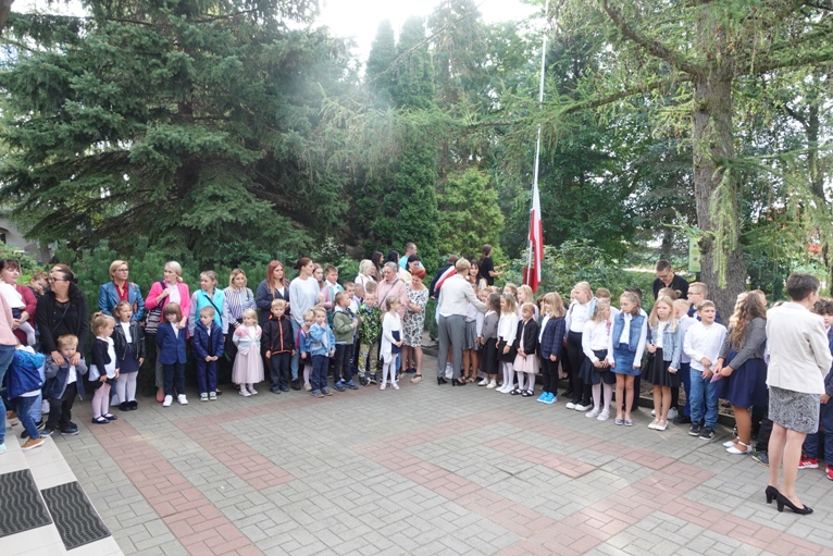 Od ponad tygodnia trwa nowy rok szkolny. Rozpoczęliśmy go 1 września uroczystym apelem. Wspólnie odśpiewaliśmy hymn państwowy, podczas którego na maszt została wciągnięta biało – czerwona flaga. Prowadząca spotkanie pani Krystyna Balewska przywitała księdza proboszcza Józefa Kortasa, nauczycieli, rodziców i przede wszystkim uczniów naszej szkoły. Wszystkim życzyła wytrwałości, sukcesów i wszelkiej pomyślności w nowym roku szkolnym.
