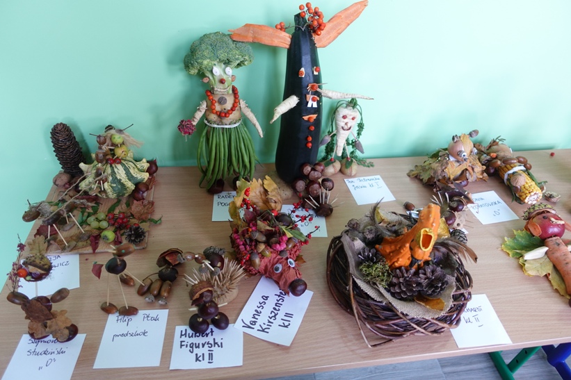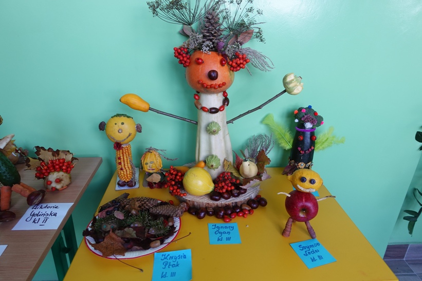 Uczniowie klas 0-III mieli okazję wziąć udział w konkursie plastycznym „Ludziki z darów jesieni”. Na wystawie zgromadzono 18 prac. Można je podziwiać na szkolnym korytarzu i na poniższych zdjęciach. Komisja konkursowa wyłaniał najpiękniejsze prace.