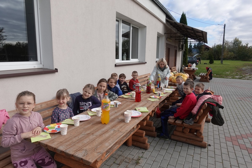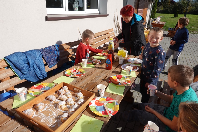 Serdecznie dziękujemy pani Kamili za dokonanie zakupów, pani Tamarze za upieczenie rogalików oraz panu Jackowi za przygotowanie ogniska i dostarczenie dyni.