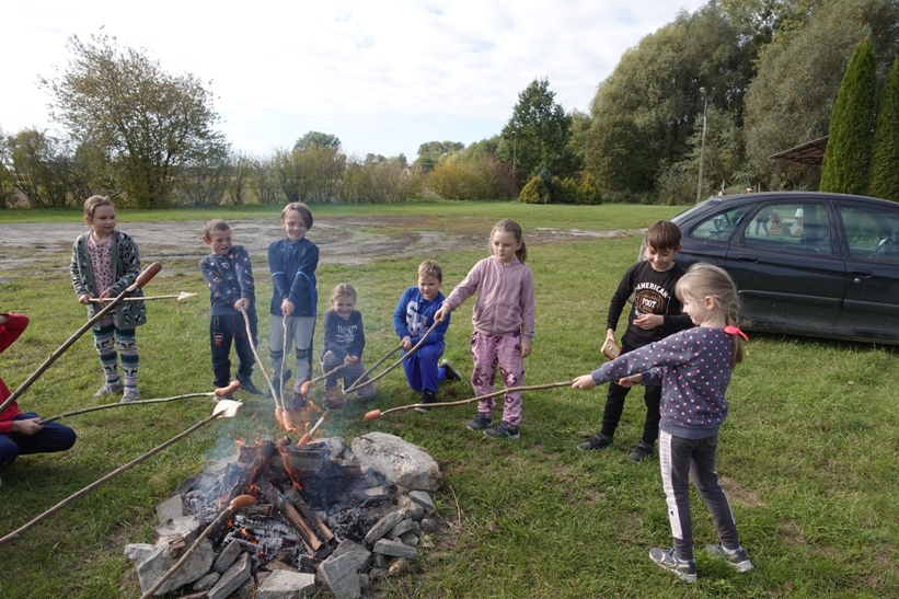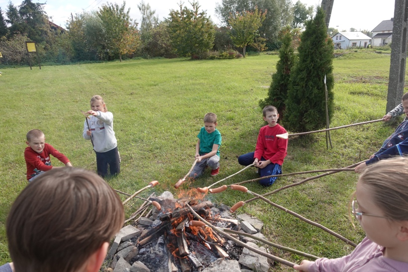 Wczoraj, wykorzystując piękną pogodę, uczniowie klasy I i III udali się do świetlicy wiejskiej w Trylu na ognisko. Pieczenie kiełbasek i chleba wymagało sporej cierpliwości, jednak smak upieczonych pyszności wyrównywał ten trud.