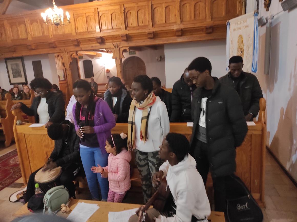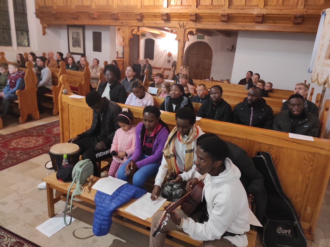 Moi goście okazali się ludźmi o wielkich sercach. Podczas uroczystych Mszy świętych dali świadectwo Kościoła żywego, radosnego, tętniącego optymizmem i radością. Śpiewy w różnych językach (m.in. francuskim, angielskim) przyciągały nas do wspólnego przeżywania Eucharystii. Przy bębnach, grzechotkach, dzwonkach i innych instrumentach typowych dla krajów Afryki, wsłuchani w przepiękne głosy tych młodych ludzi mogliśmy poczuć obecność Boga. Mogliśmy obserwować ich przeżycia podczas Eucharystii. Ich entuzjazm, uśmiech, taniec sprawił, że wzruszaliśmy się, uśmiechaliśmy, prowadziliśmy dialog… To jest Kościół. Nasze dzieci podbiegały do gości, przytulały się, starały się rozmawiać. I okazało się, że tak można, bo jedynym językiem, który wszyscy znamy lub powinniśmy znać, to język miłości.