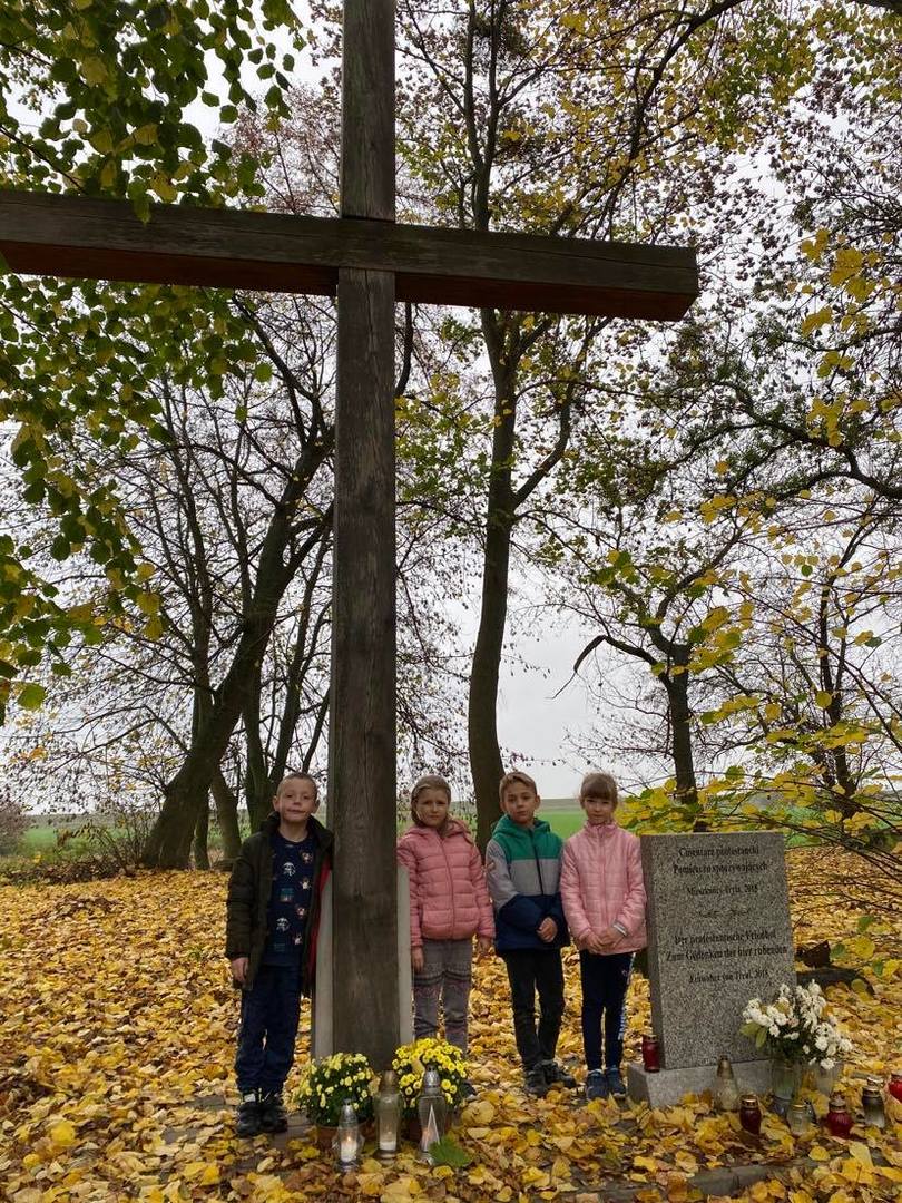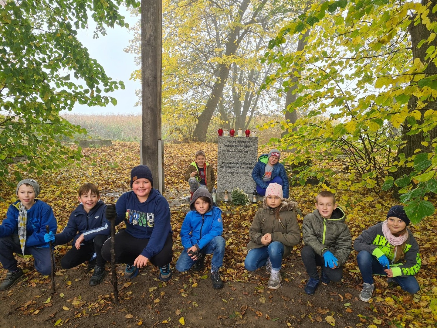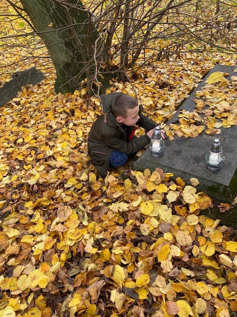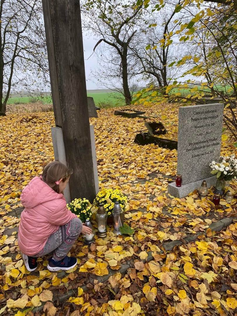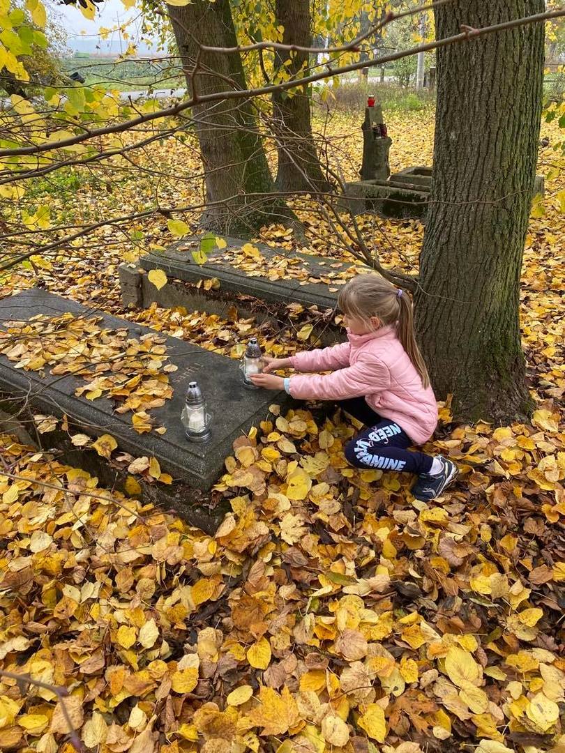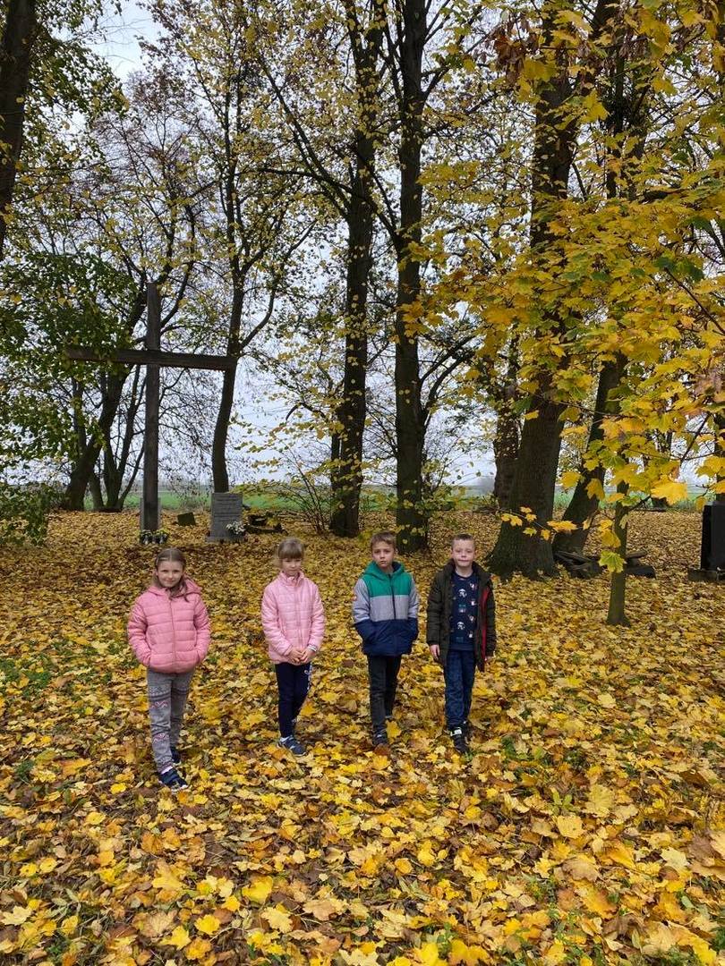 Starsze klasy porządkowały teren wokół mogił, młodsze dzieci zapaliły na grobach znicze, położyły kwiaty.